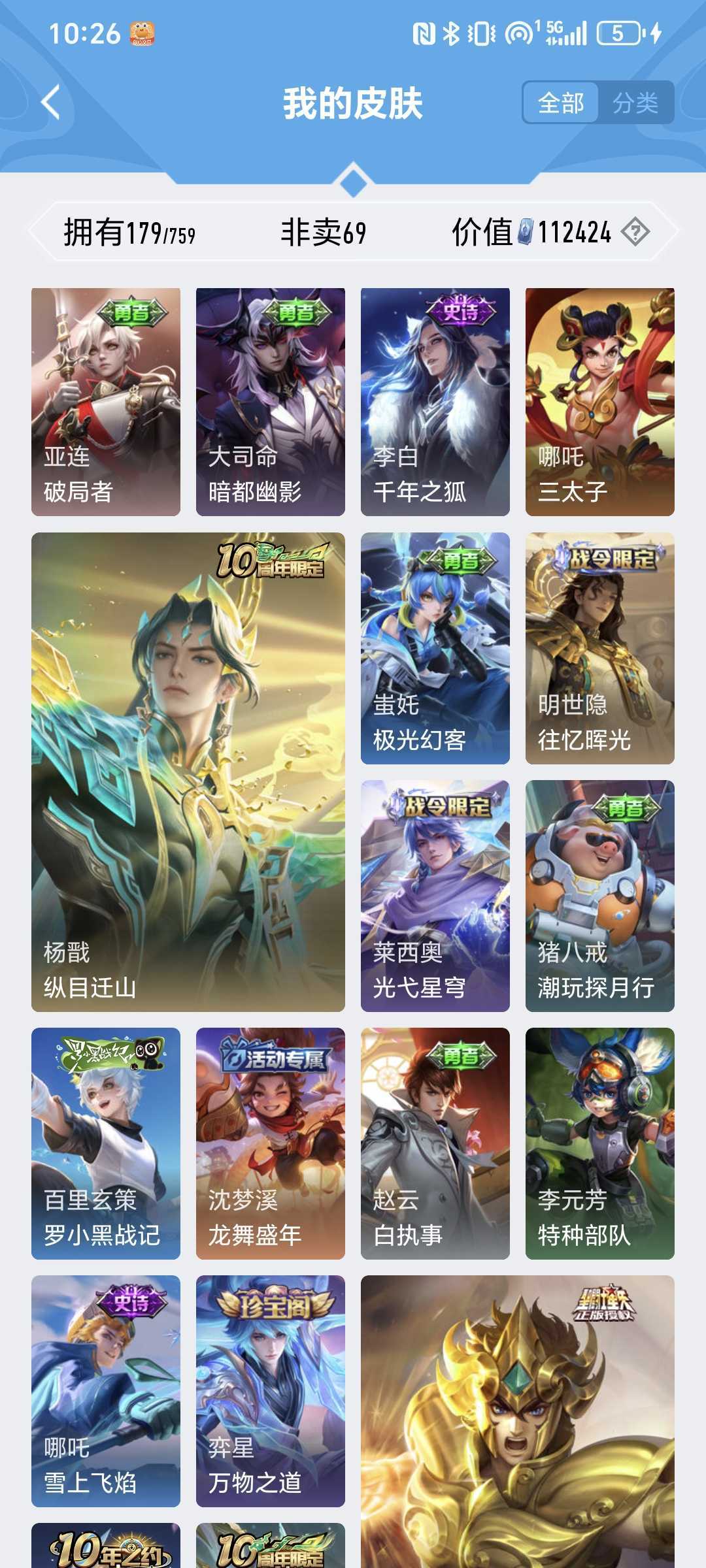 v10、524皮5水4无双、遇见神鼓、齐天大圣、白虎志、韩信荣耀典藏、72传说、愿照·九州拓、时之魔女、瑶无双、青丘、九尾、神器明辉仪
