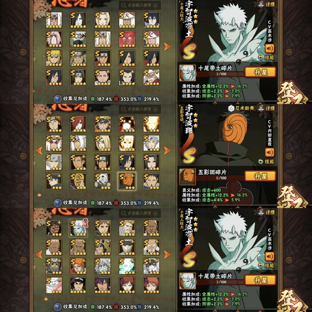 六道带土⛎九喇嘛水门3700万顶配战力⛎405全忍者⛎全满配置⛎全点券忍者