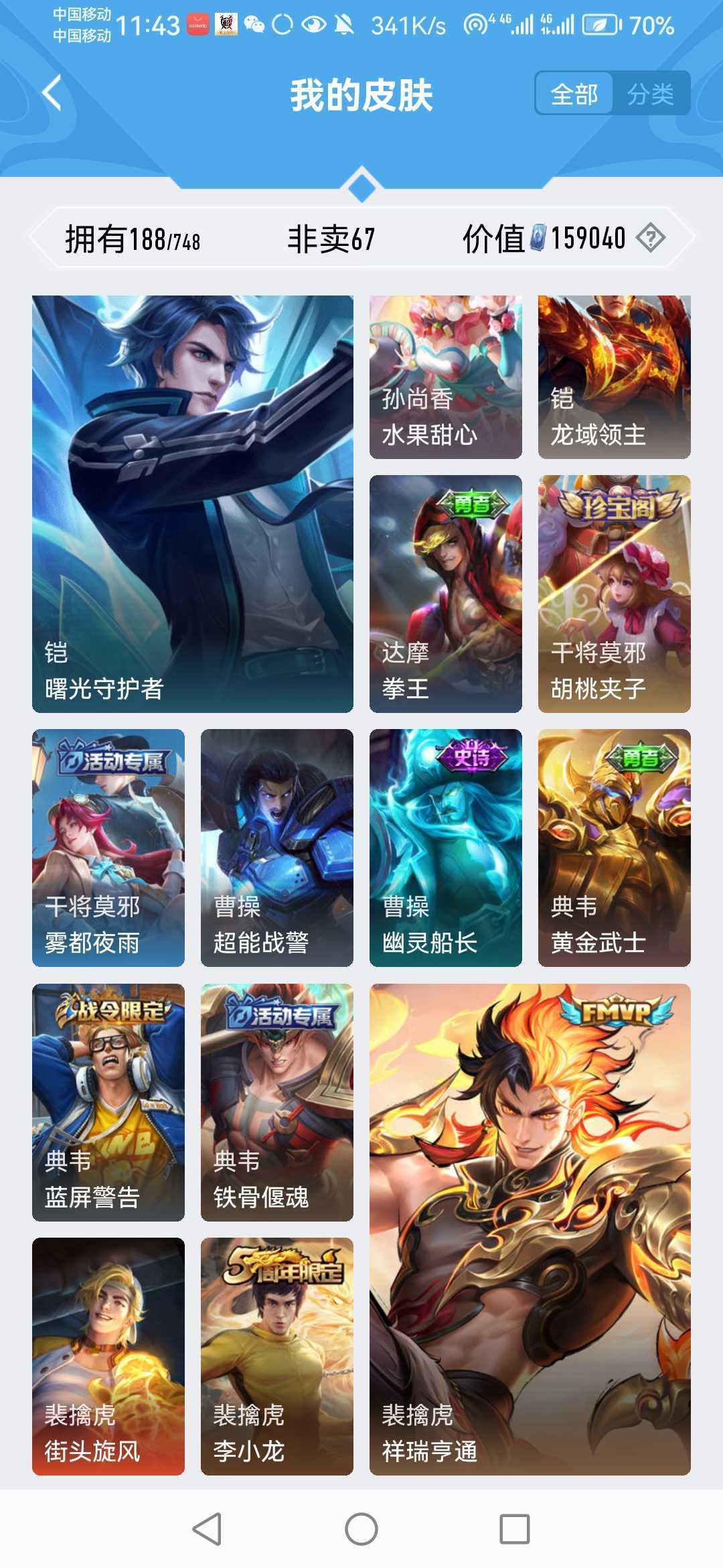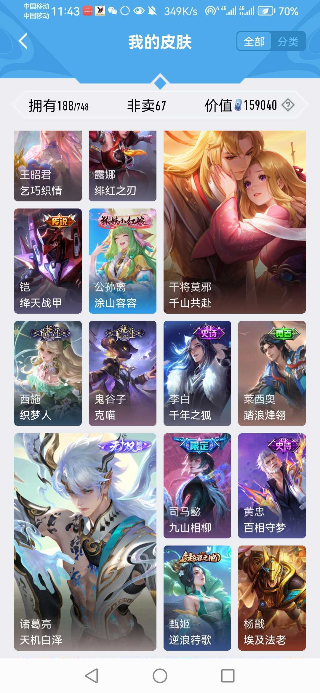 【非沄直接上号】极品V10★三历史国标★430皮★六典藏★诸葛亮新典藏★虎年五限定★鸣剑戈影★活力突击️★多限定