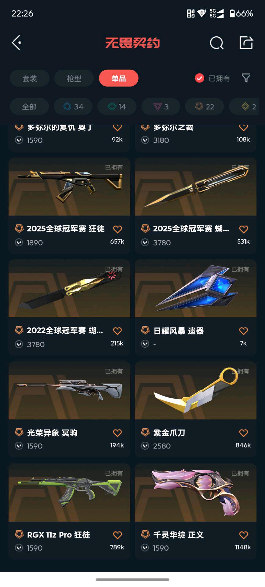 • 传奇数量: 22