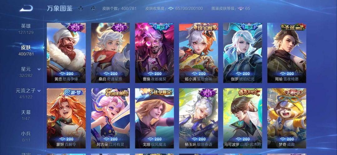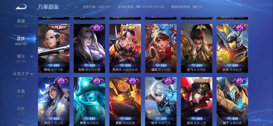 V10、550皮14水、吕布典藏-千魇归渊、云缨-神骥·越千峰、怪盗基德、伽罗星传说红枫、瑶典藏拾光映像、冥王哈迪斯、、龙年限定、齐天大圣
