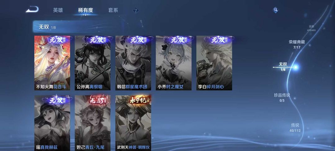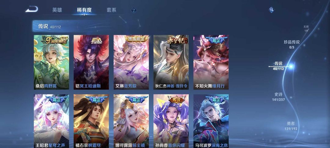 v10、12典藏520皮、马超无双飞将、韩信典藏、马可深海之熄、瑶珍品传说大耳狗之梦、青丘·九尾、枫霜尽、绯月行、前尘镜、至尊宝、天魔缭乱