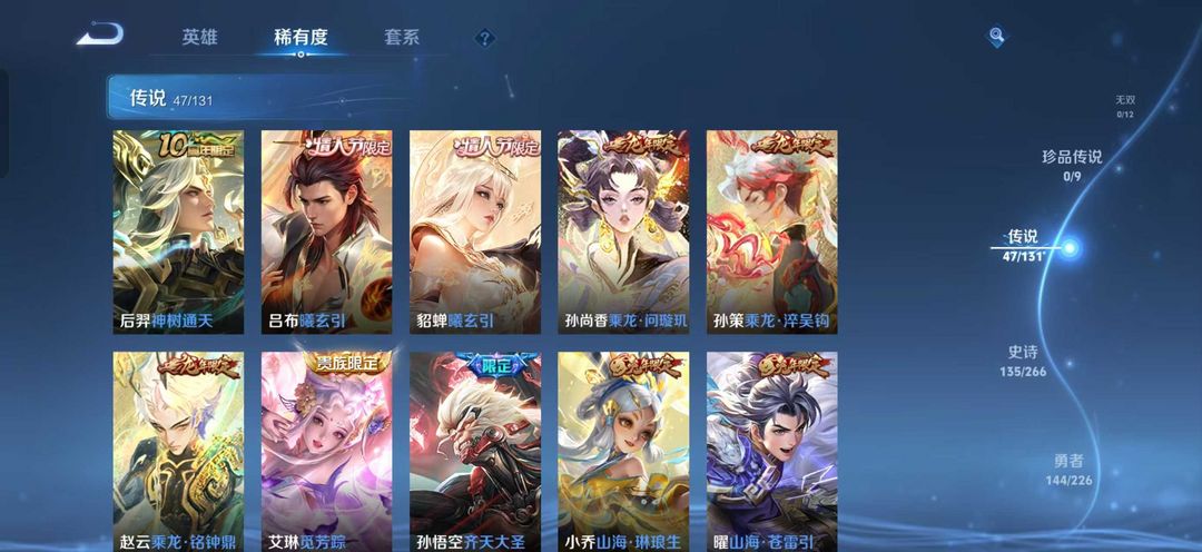 V10、543皮14水、吕布典藏-千魇归渊、愿照·九州拓、愿照·众生和、怪盗基德、伽罗星传说红枫、瑶典藏拾光映像、冥王哈迪斯、、龙年限定、齐天大圣