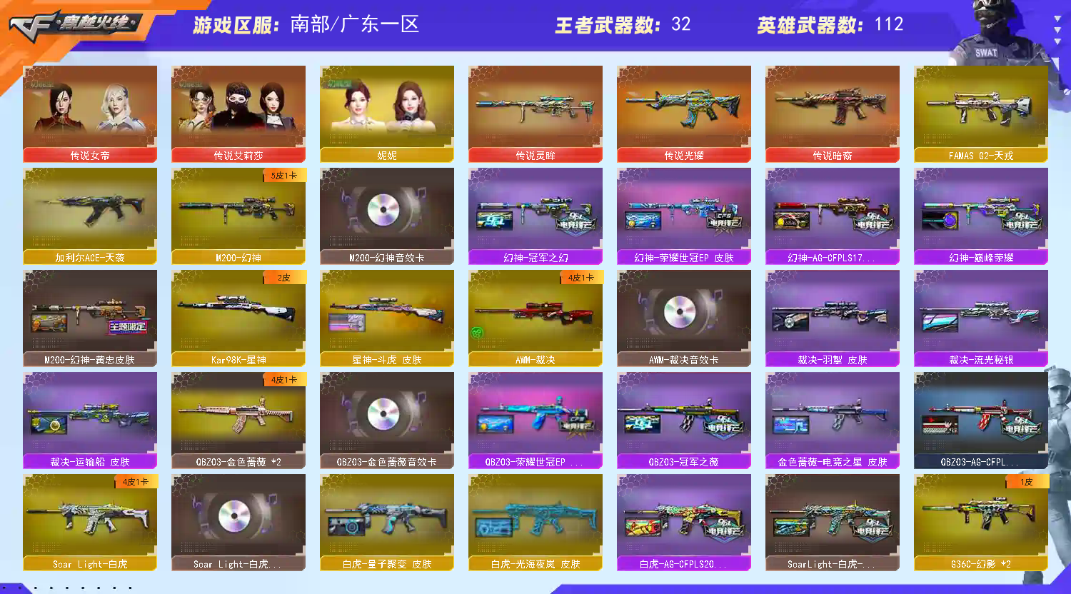 首页 > 租号大厅 > 穿越火线 > 电信区/广东一区 > 【南部】首发光海白虎⭐女帝+灵眸⭐幻神EP5皮+音⭐裁决套+星神2025⭐蔷薇套⭐手枪