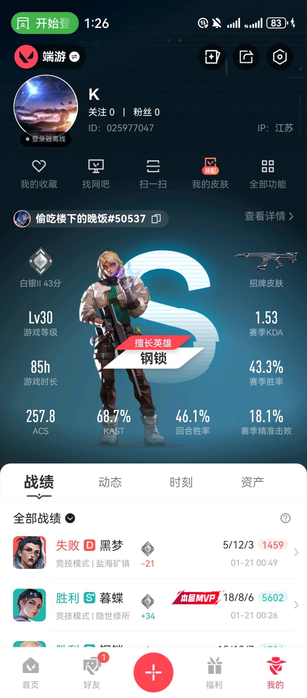 • 游戏区服:无畏契约-wegame / wegame / wegame