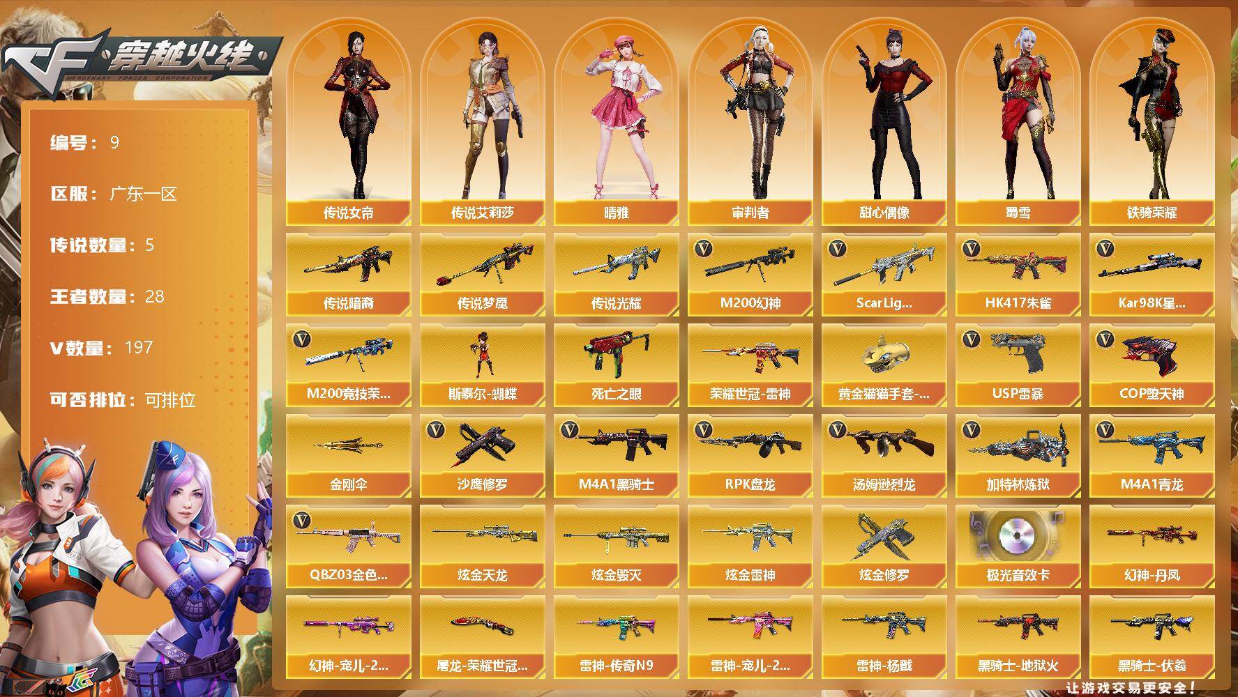 • 游戏区服:穿越火线 / 电信区 / 广东一区