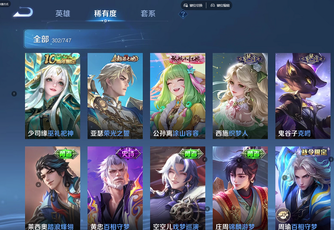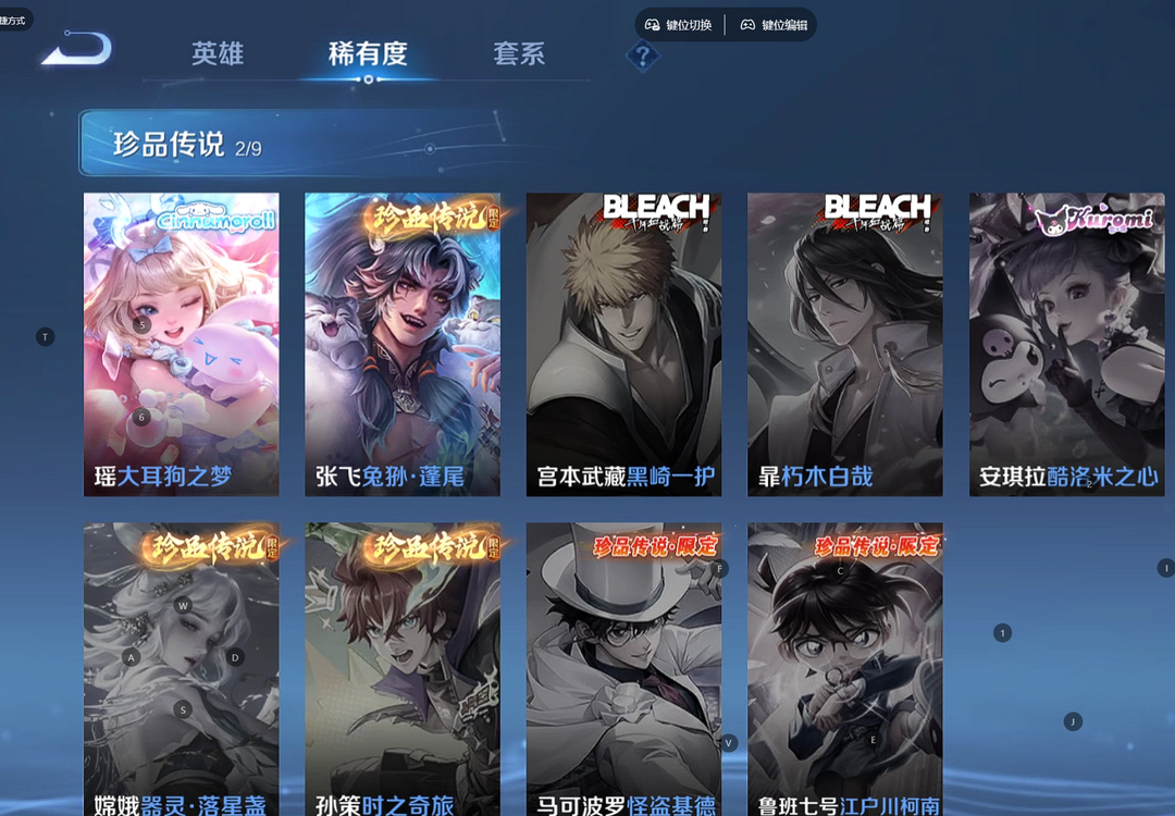 v10、12典藏520皮、马超无双飞将、韩信典藏、马可深海之熄、瑶珍品传说大耳狗之梦、青丘·九尾、枫霜尽、绯月行、前尘镜、至尊宝、天魔缭乱