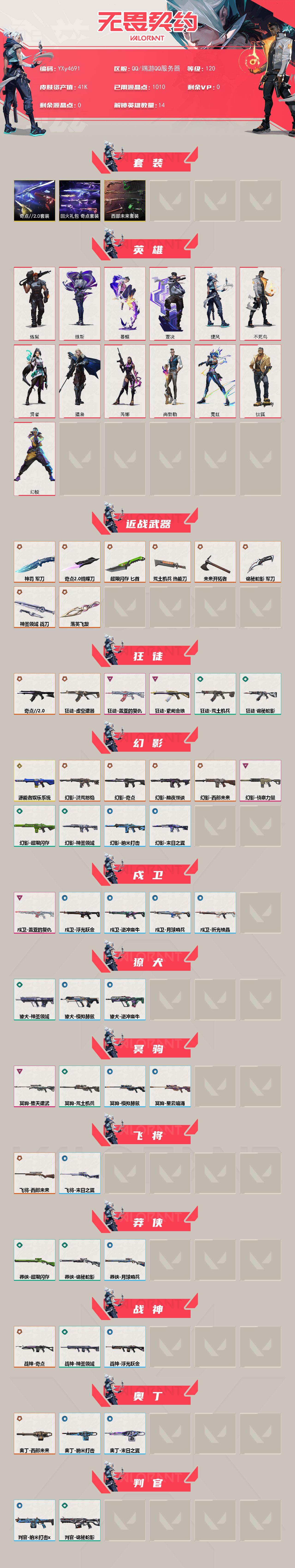 冻结三分钟内解除,短信通知重新上即可!喜欢收藏不迷路、游戏异常进小黑屋、时间不够请提前续租或者不要开局 【套装】:西部未来套装,奇点//2.0套装,回火礼包:奇点套装 【英雄】:幻棱,炼狱,维斯,暮蝶,钛狐,壹决,捷风,不死鸟,贤者,猎枭,芮娜,尚勃勒,霓虹 【近战武器】:近战武器-奇点//2.0 蝴蝶刀,近战武器-落英飞旋,近战武器-未来开拓者,近战武器-超限闪存 匕首,近战武器-荒土机兵 热能刀,近战武器-神罚 军刀,近战武器-诡秘蛇影 军刀,近战武器-神圣领域 战刀 【狂徒】:狂徒-奇点//2.0,狂徒-虚空遗器,狂徒-盖亚的复仇,狂徒-紫阙金琅,狂徒-荒土机兵,狂徒-诡秘蛇影 【幻影】:幻影-源能者娱乐系统,幻影-黯夜怪谈,幻影-洪荒怒焰,幻影-奇点,幻影-西部未来,幻影-侦察力量,幻影-超限闪存,幻影-神圣领域,幻影-纳米打=击,幻影-末日之翼,幻影-西部未来 【戍卫】:戍卫-盖亚的复仇,戍卫-浮光跃金,戍卫-逆冲蛮牛,戍卫-月球哨兵,戍卫-折光棱晶 【獠犬】:獠犬-神圣领域,獠犬-模拟赫兹,獠犬-逆冲蛮牛 【冥驹】:冥驹-堕天遗武,冥驹-荒土机兵,冥驹-模拟赫兹,冥驹-星云暗涌 【飞将】:飞将-西部未来,飞将-末日之翼 【莽侠】:莽侠-超限闪存,莽侠-诡秘蛇影,莽侠-月球哨兵 【战神】:战神-奇点,战神-神圣领域,战神-浮光跃金 【奥丁】:奥丁-西部未来,奥丁-纳米击,奥丁-末日之翼 【判官】:判官-诡秘蛇影,判官-纳米击x 【雄鹿】:雄鹿-模拟赫兹,雄鹿-逆冲蛮牛,雄鹿-月球哨兵 【骇灵】:骇灵-奇点,骇灵-荒土机兵,骇灵-浮光跃金,骇灵-星云暗涌 【蜂刺】:蜂刺-超限闪存,蜂刺-星云暗涌,蜂刺-折光棱晶 【标配】:标配-超能偶像,标配-荒土机兵,标配-浮光跃金,标配-折光棱晶 【VCT手枪】:标配-VCT25 x BLG 【正义】:正义-奇点,正义-西部未来,正义-超限闪存,正义-纳米击,正义-游戏结束,正义-月球哨兵 【鬼魅】:鬼魅-奇点//2.0,鬼魅-诡秘蛇影,鬼魅-模拟赫兹,鬼魅-星云暗涌 【狂怒】:狂怒-神圣领域,狂怒-逆冲蛮牛 【短炮】:短炮-末日之翼 【卡面】:终章:激斗汉堡 卡面,进入射程 卡面,分崩离析 卡面,纳米击 卡面,抑制技术 卡面,激斗汉堡 卡面,瓦娃雪糕 P2 卡面,从黄昏到黎明 卡面,荒土机兵 卡面,银弹猎手 卡面,逆冲蛮牛 卡面,《双城之战》拥抱 卡面,精灵大战 卡面,欢迎来到底城 卡面,南瓜盛典 卡面,唱片的故事 卡面,钢弓与箭弦 卡面,排除故障 卡面,奇点//2.0 卡面,战术桌游 卡面,悠享食光 卡面,修车达人 卡面,模拟赫兹 卡面,浮光跃金 卡面,超限闪存 卡面,维斯工牌 卡面,正义的化身 卡面,终章:生意人麦宝 卡面,铁之华 卡面,时间到 卡面,最高舞台 卡面,声感陷阱设计图 卡面,梦幻奶茶 卡面,无畏契约GO!一卷:芮娜 卡面,无畏契约GO!一卷:零 卡面,一击全倒 卡面,天台狂欢 卡面,代号红色 卡面,新兵报到 卡面,V契约 卡面,无畏契约 卡面 【喷漆】:小小心意 喷漆,战“素”兔 喷漆,宇宙的指引 喷漆,请求重启 喷漆,逆冲蛮牛 喷漆,纳米击 喷漆,鼻尖上的蝴蝶 喷漆,简笔画黯兽 喷漆,独守蝰腹 喷漆,他们将落荒而逃 喷漆,通缉:战术鹅 喷漆,荒土机兵 喷漆,别挡我吃球! 喷漆,嗨宝南瓜灯 喷漆,嘭! 喷漆,都算到了 喷漆,控场勿近 喷漆,皮蛋呼呼 喷漆,像素星礈 喷漆,图谋不轨的零 喷漆,小丑猫 喷漆,模拟赫兹 喷漆,高丽风情小熊 喷漆,奇点//2.0 喷漆,蹲到一个 喷漆,全力集中 喷漆,超限闪存 喷漆,RUA一下 喷漆,熊抱 喷漆,高丽风情小虎 喷漆,记在小本本 喷漆,防弹鹅 喷漆,高丽风情小蛙 喷漆,超级粉丝 喷漆,捷风差距 喷漆,惊声尖叫 喷漆,拼一枪 喷漆,买装还是存钱 喷漆,红鳞 喷漆,松叶 喷漆,放下武器 喷漆,胜利属于无畏契约 喷漆,GLHF 喷漆,无畏契约 喷漆 【挂饰】:终章:猫猫木乃伊 挂饰,荒土机兵 挂饰,悠闲鸡块 挂饰,猫猫木乃伊 挂饰,水壶 挂饰,纳米击 挂饰,逆冲蛮牛 挂饰,可爱糖糖 挂饰,伞绳 挂饰,《双城之战》小蛋糕 挂饰,第九季//第三幕 纪念币 挂饰,拳击战术熊 挂饰,工具腰带 挂饰,无畏契约GO!一卷 芮娜 挂饰,无畏契约GO!一卷 零 挂饰,暗藏猫腻 挂饰,高丽风情 挂饰,奇点//2.0 挂饰,熔岩灯 挂饰,超限闪存 挂饰,迷你K/O 挂饰,模拟赫兹 挂饰,第九季//第二幕 纪念币 挂饰,终章:这瓜保熟 挂饰,糖葫芦 挂饰,袖珍捷风 挂饰,迷你浓缩 挂饰,Z世代特饮 挂饰,第九季//一幕 纪念币 挂饰,天外飞客 挂饰,无畏契约 纪念币 挂饰;西部未来 奥丁,奇点 战神,盖亚的复仇 狂徒,虚空遗器 狂徒,源能者娱乐系统 幻影,侦察力量 幻影,洪荒怒焰 幻影,