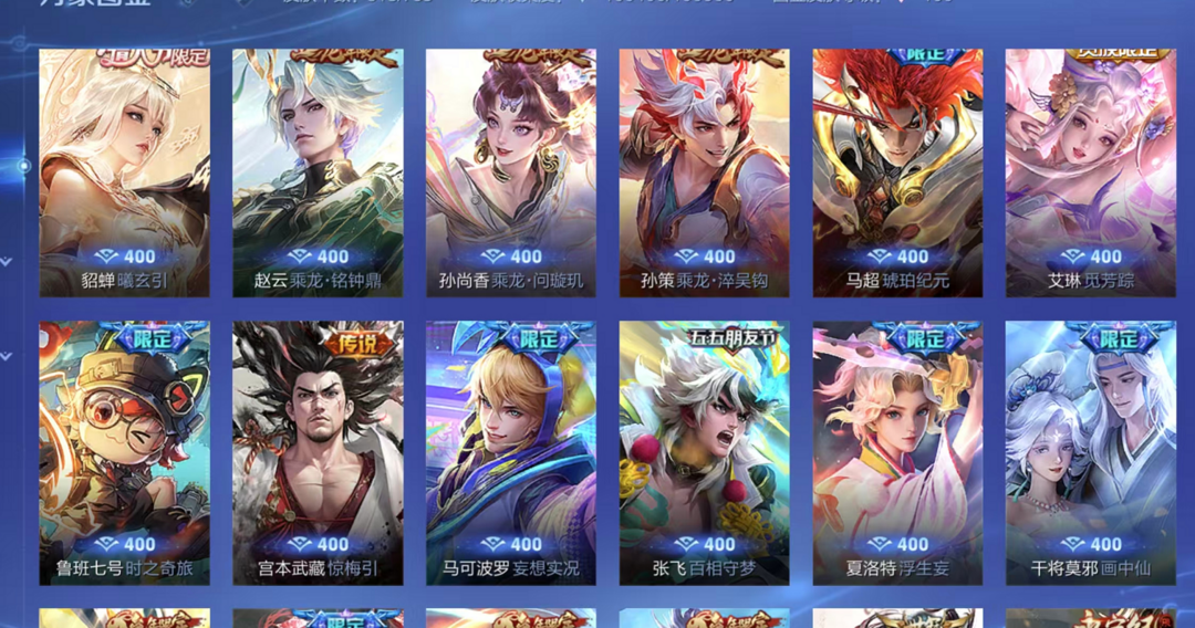 V10、543皮14水、吕布典藏-千魇归渊、愿照·九州拓、愿照·众生和、怪盗基德、伽罗星传说红枫、瑶典藏拾光映像、冥王哈迪斯、、龙年限定、齐天大圣