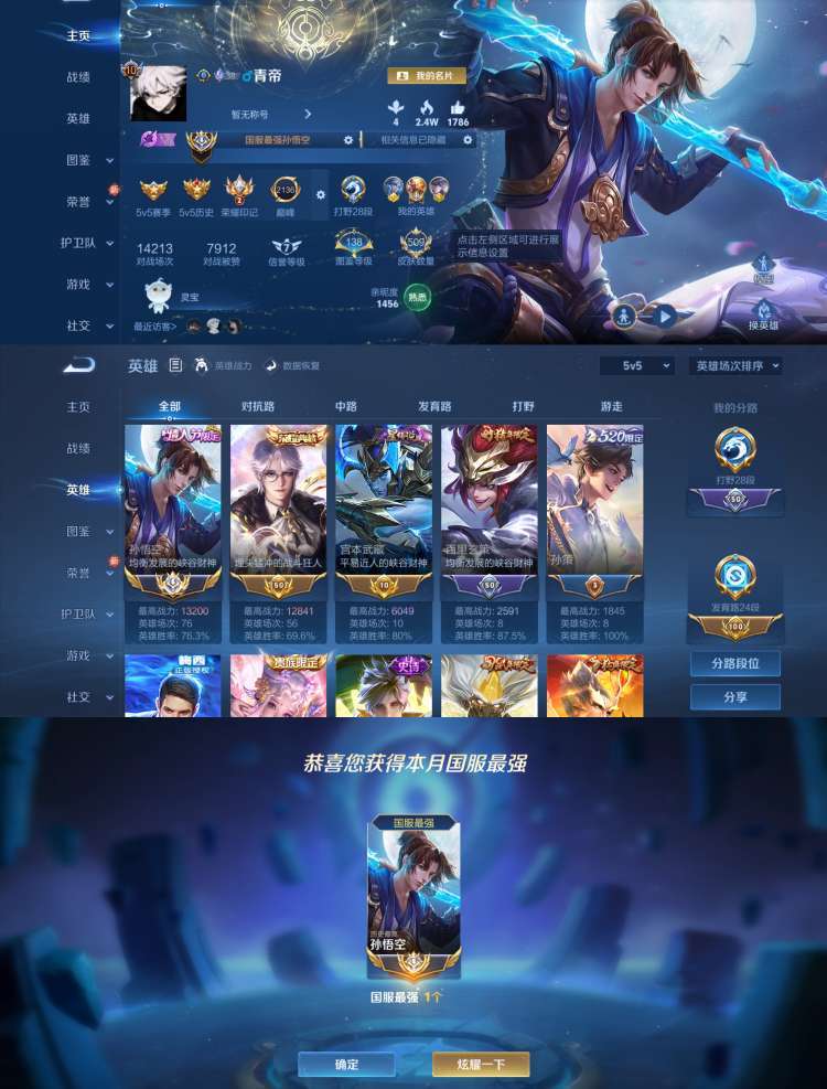 2月在榜大国服猴子❤️至尊宝❤️可排禁巅峰❤️超多限定皮❤️青帝训练号