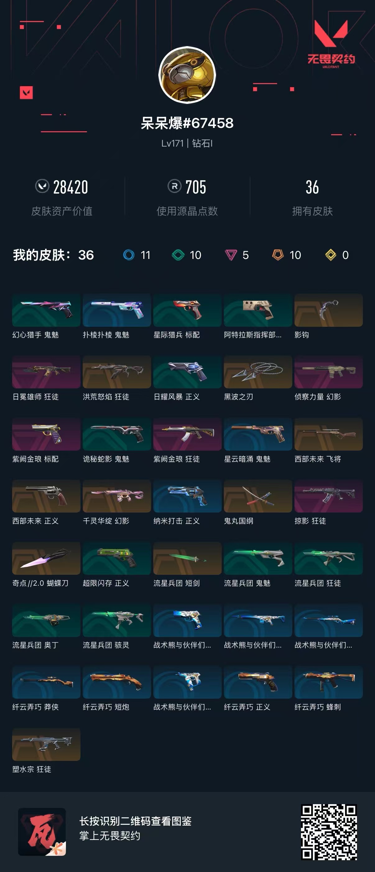 郑重声明: !!!!!因无畏契约检测严格,为防止后台插件导致封号,请务必重启电脑!!!!本人商户多年,所属账号已在派出所备案,若出现 账号封禁/毁号等情况,会马上与平台联系,平台会报警处理!请租客文明游戏,不要开挂或挂机! 1.登陆界面稍等2分钟会上去(自动登录)老板不要着急,一次不行多来几次wegame界面要耐心等2分钟 2.密令会自动输入如果一次不成功多来几次 3..进入wegame后到弹短信验证处,关闭掉,重新下载无畏契约这个游戏即可成功上号,记住。这个方法百分百上号成功!就是进入wegame重新下载无畏契约游戏 !!!百分百成功!! 4.请及时续租不要挂机,到时不下线,但是下一个会挤号导致挂机,所以请及时续租,导致禁赛的一律拉黑 5.祝老板玩的愉快,喜欢可以收藏关注 ! 开挂必追究,不拿到赔偿不罢休! 如果上号正在游戏中,是上个租客到时不下线导致的,不是号主在玩,请帮忙打完这局, 谢谢了,为了防止顶号,请您及时续租获得更好的游戏体验❤️;黑波之刃,洪荒怒焰 狂徒,掠影 狂徒,侦察力量 幻影,紫阙金琅 狂徒,塑水宗 狂徒,西部未来 飞将,
