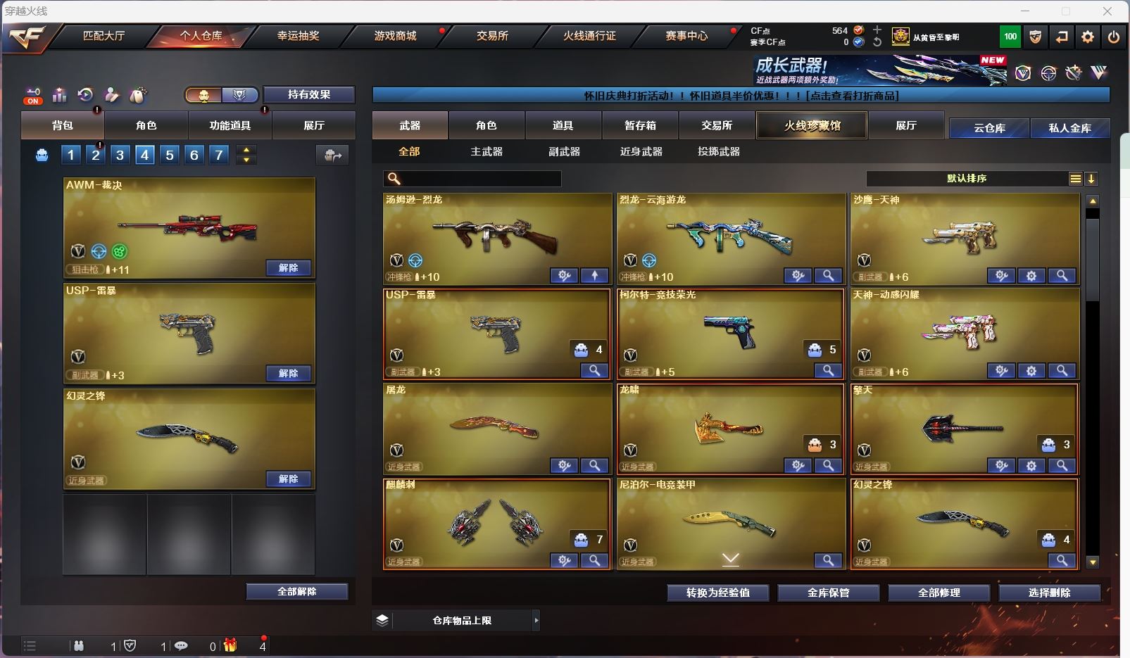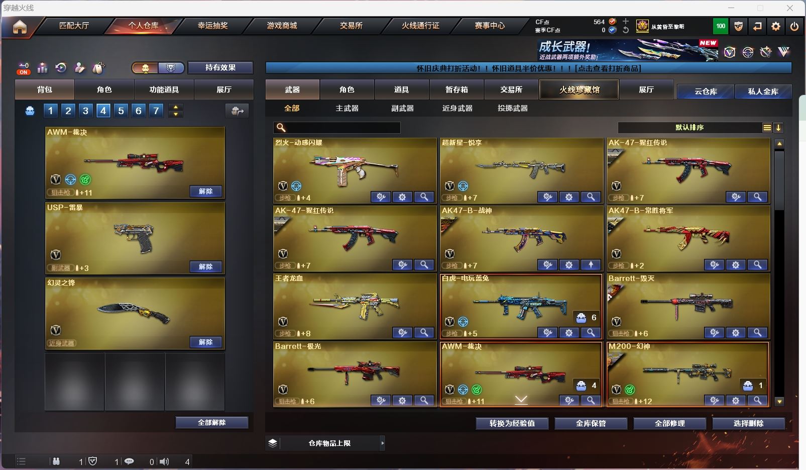 【m200幻神+黄忠 】【m200竞技荣光套+usp雷暴+四防云悠悠】【王者星神】【6烈龙 盘龙*2 炼狱*2 斯太尔蝴蝶 】【scar白虎】【qbz金色蔷薇+卡+冠军之薇】【火麒麟+卡+枪娘】【雷神+冠军之魄】【黑骑士+卡+冠军之势 】【毁灭】【极光】【裁决 】【武器:白虎电玩 王者龙血 王者森决 】【4手枪:天神*2 竞技荣光 usp雷暴 】【10刀具:屠龙 龙啸 擎天 麒麟刺 幻灵之峰 竞技荣光 电竞装甲】【3雷套:电竞装甲 幻灵雷 竞技荣光零】【小人枪:天龙乔伊教练 】【音效卡:金色蔷薇音效卡 火麒麟音效卡 黑骑士音效卡 】【四防角色:云悠悠 王者零国色天香 卡塔琳娜 】;USP-雷暴,电竞教官-云悠悠,RPK-盘龙,QBZ03-金色蔷薇,M200-幻神,Scar Light-白虎,