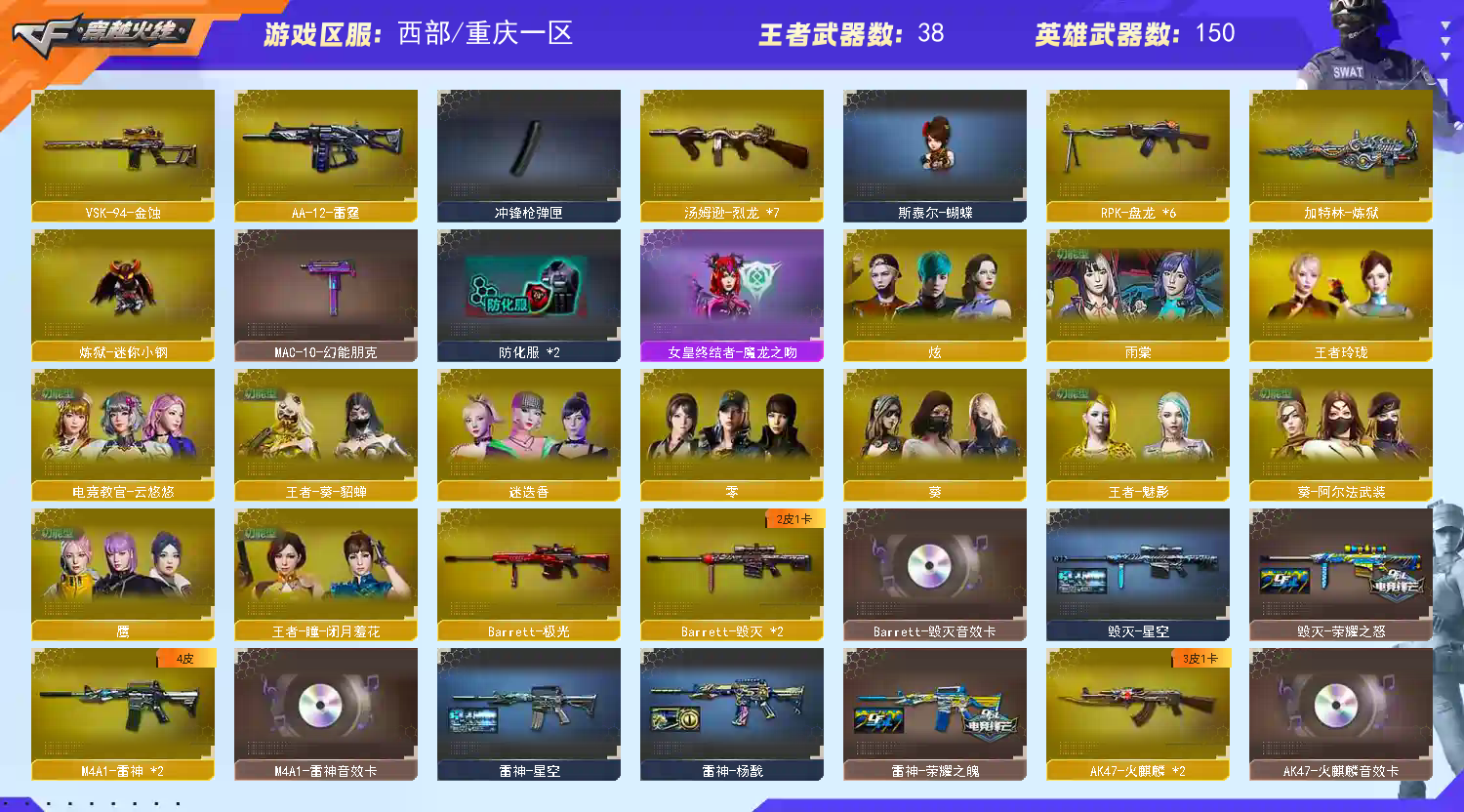 • 游戏区服:穿越火线 / 电信区 / 重庆一区