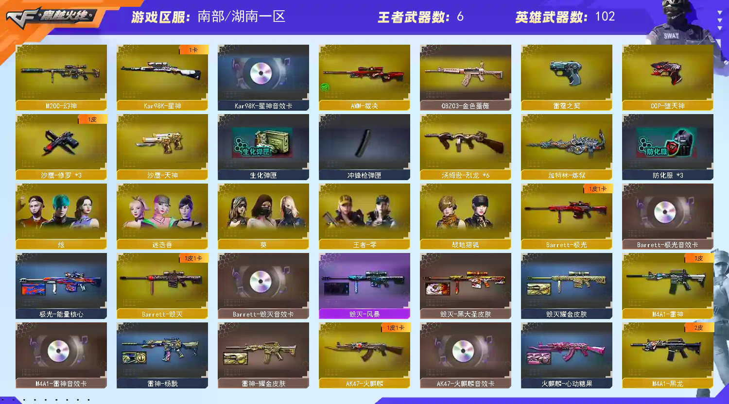 南部❤【幻神】【98K-星神+音效卡】【QBZ蔷薇】【6烈】【裁决】【毁灭+音效卡】【极光+音效卡】
