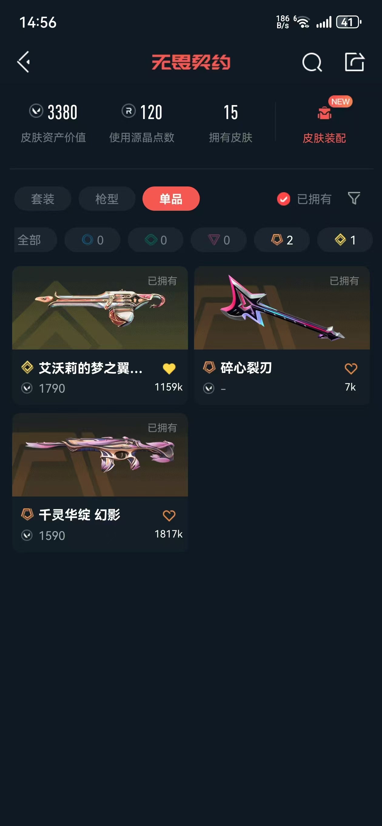 • 武器皮肤数量: 15