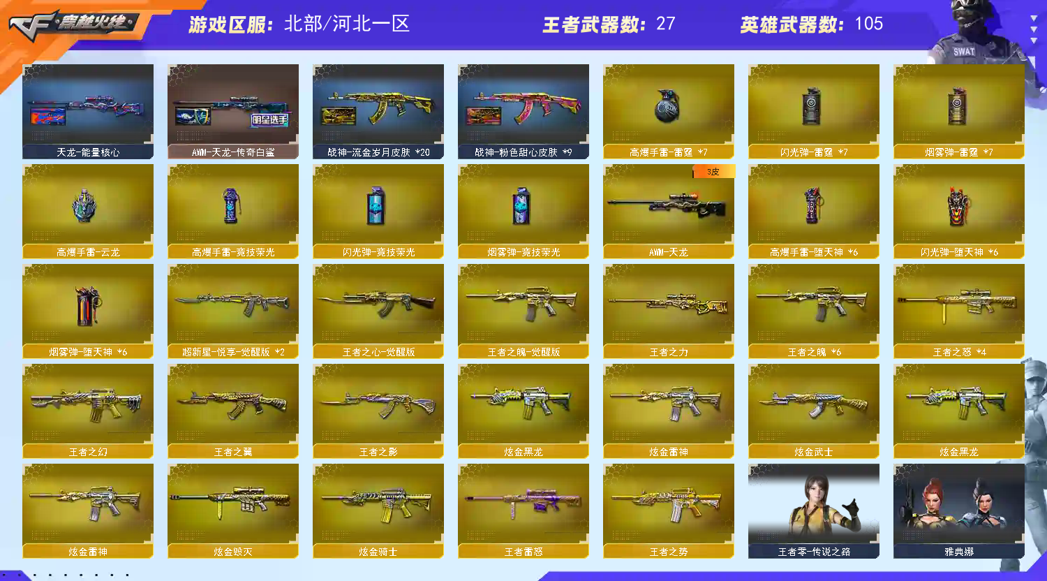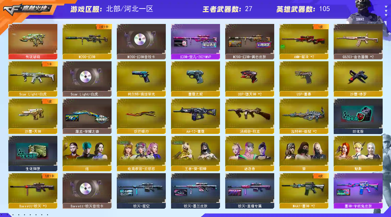 帐号已在公安机关备案,开挂封号追究刑事责任,网络不是法外之地,;USP-雷暴,炽芒蝶刃,电竞教官-云悠悠,QBZ03-金色蔷薇,M200-幻神,Scar Light-白虎,