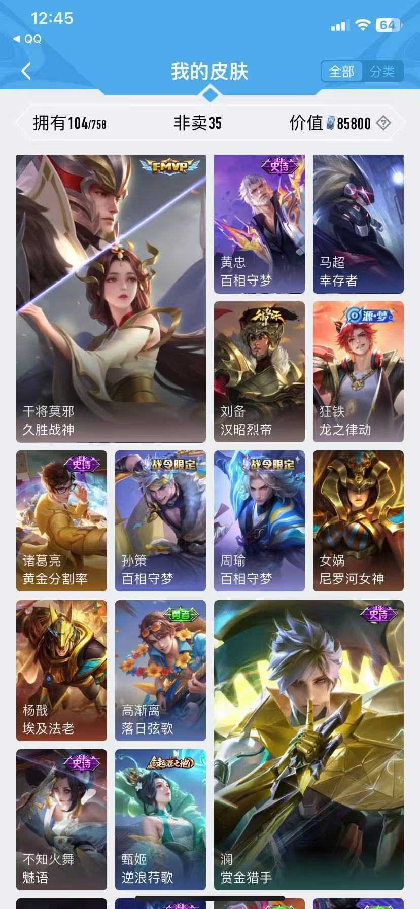 无双贵族V10♥760皮肤♥吕布典藏千魇归渊♥猴子无双无相♥诸葛亮天机白泽♥貂蝉繁花慕夏,全屏天幕♥请先看最后一张图找客服♥不卡非☁♥166横行霸道