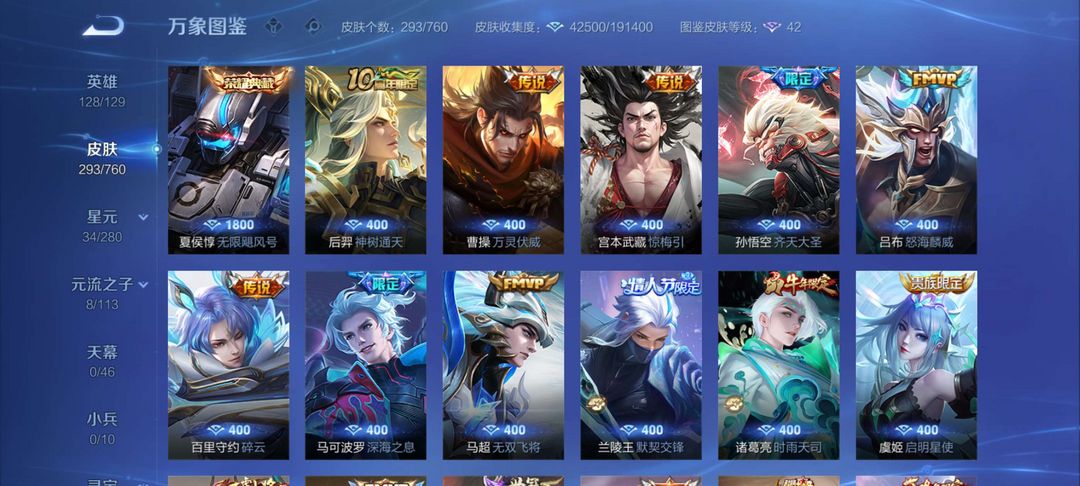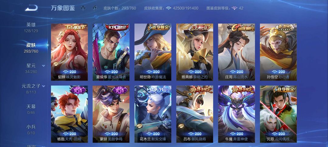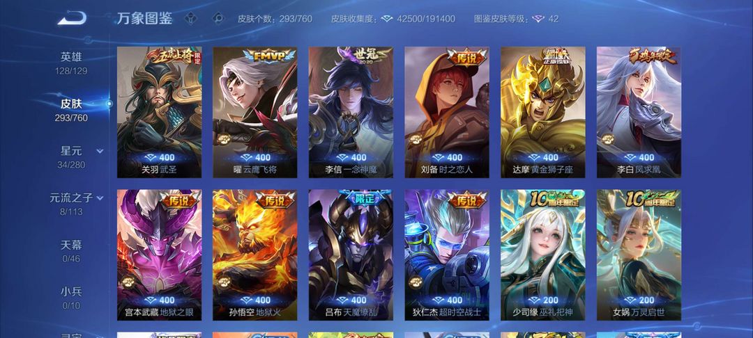 【非云直上】537满皮满典藏12星元◎鲁班新皮◎虞姬星元◎天使星元◎白金战神◎妲己绝版星元