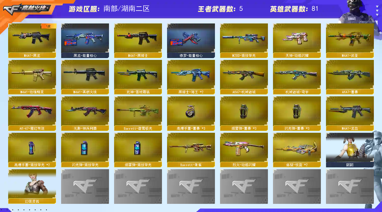 • 游戏区服:穿越火线 / 电信区 / 湖南二区