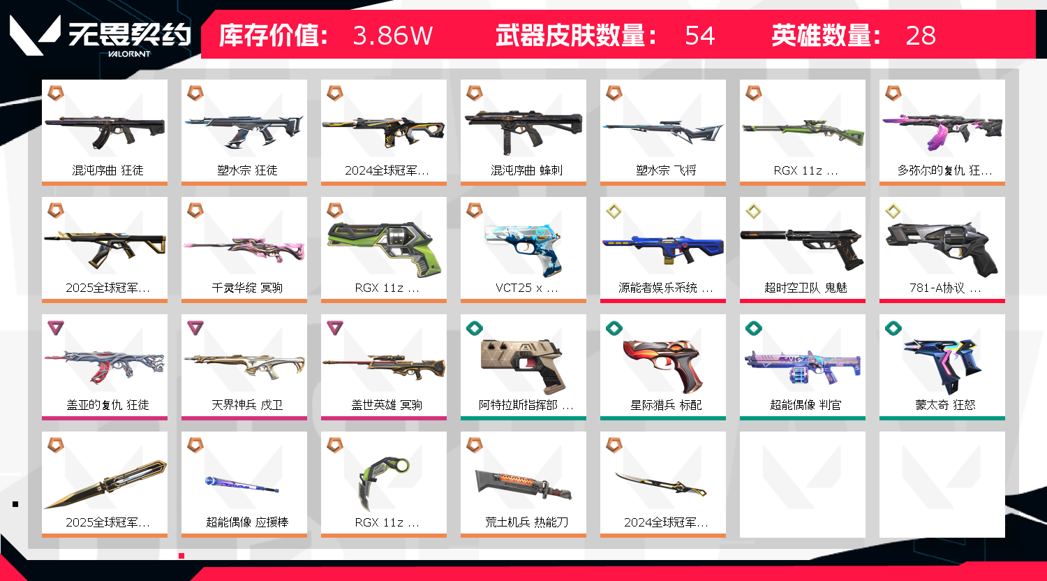 • 皮肤资产价值: 38570