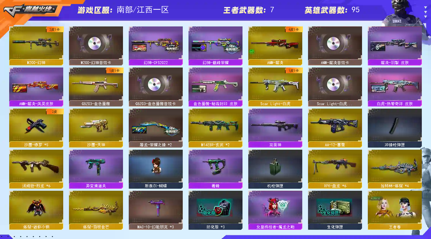 不要挂机开挂 谢谢VIP6南部幻神荣耀三件套裁决三件套白虎三件套qbz三件套四防角色12张音效卡六盘六烈+蝴蝶小钢弹夹;
