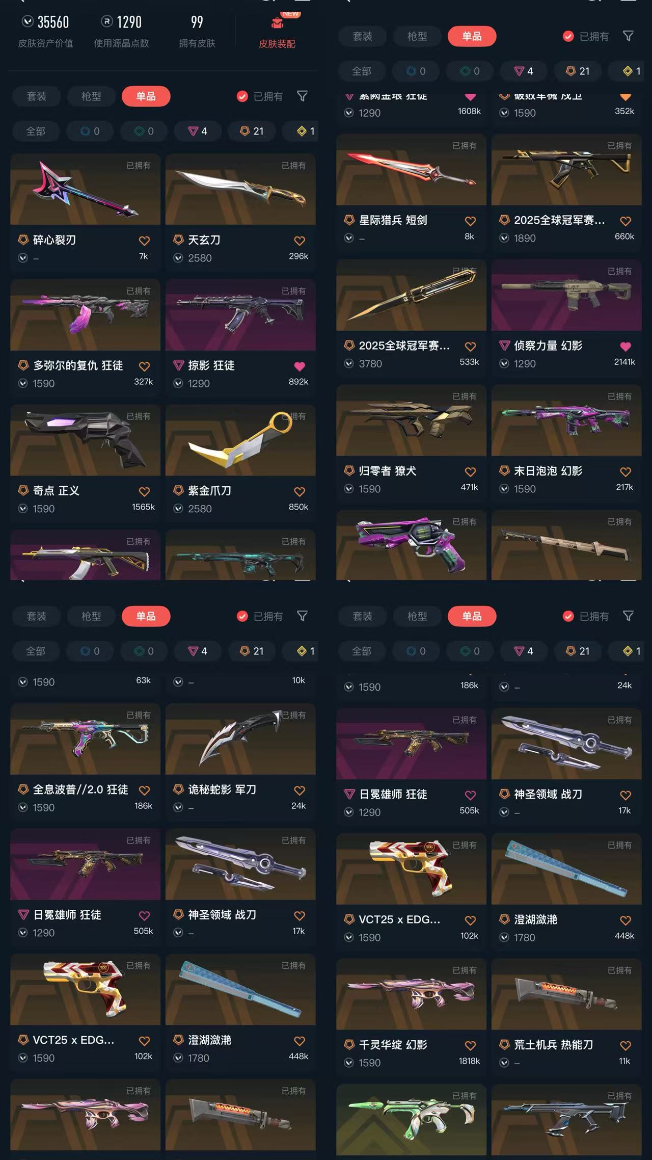 精氪小极品✨2025冠军套✨扇子✨紫金爪刀✨塑水宗狂徒✨多弥尔狂徒✨掠影AK✨末日泡泡✨侦查千灵✨