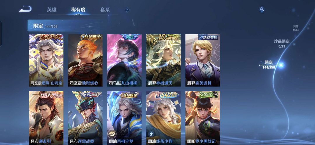 苍雷引,龙年限定,蛇年限定,虞姬典藏,马超琥珀纪元,亚连全皮,诡秘之主,小红娘全套,吕布典藏