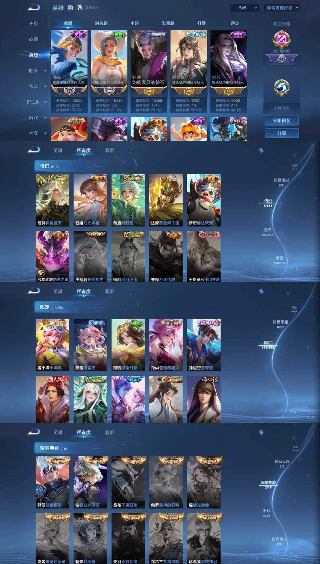 女生号 贵10 多皮肤多传说 别拿那些空号v10来比 要看性价比 貂蝉武则天夏侯惇孙悟空李白鲁班小乔荣耀水晶 妲己九尾无双皮肤 80个传说 473皮肤