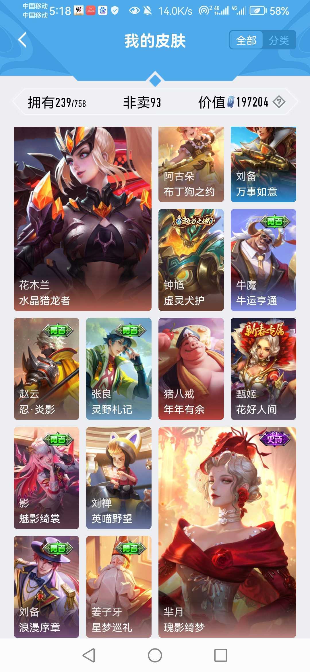 V11✨780皮肤✨马年全皮✨颠倒童话✨千魇归渊✨无相✨神罪✨山海经天机白泽✨全套死神联动✨全套穆夏✨馥梦繁花✨美神临世✨全荣耀水晶✨全无双