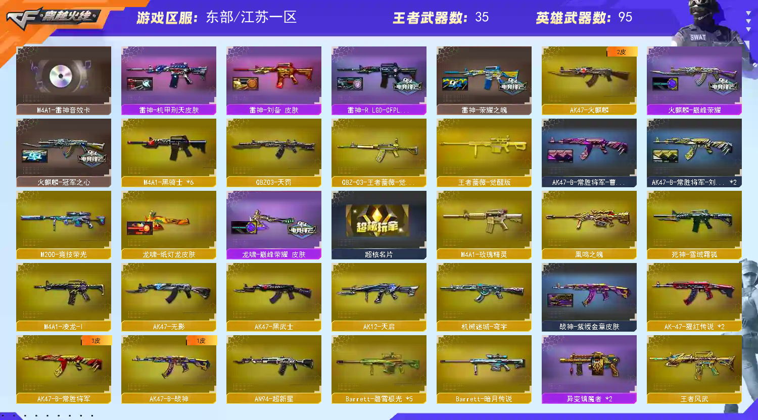 • 游戏区服:穿越火线 / 电信区 / 江苏一区
