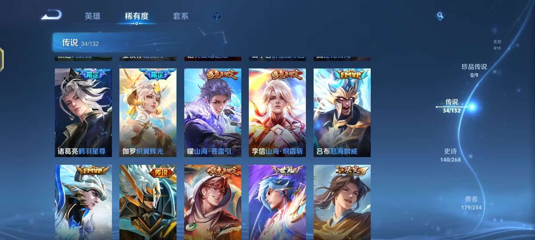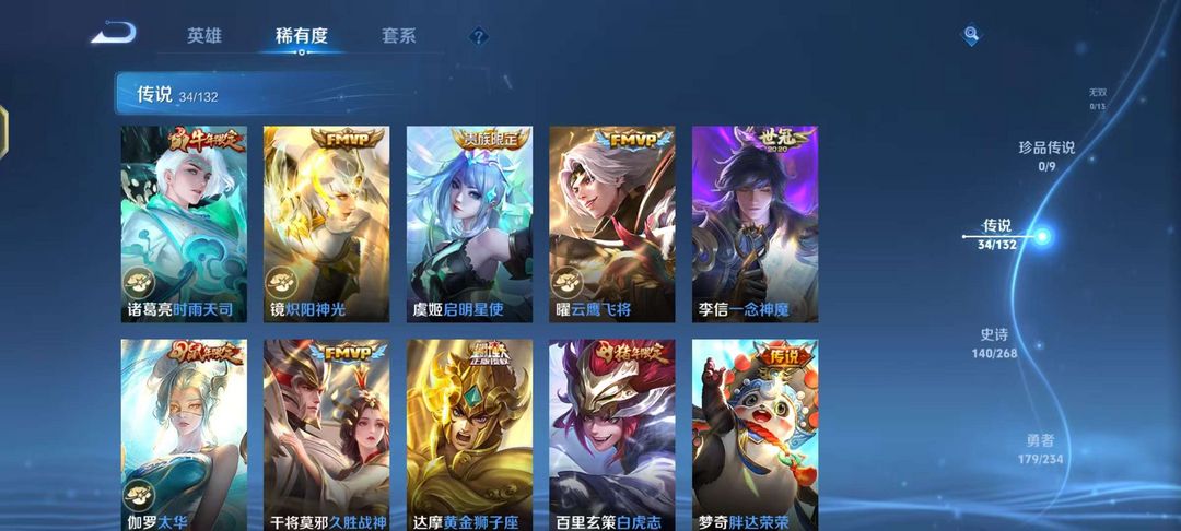 v10、12典藏520皮、马超无双飞将、韩信典藏、马可深海之熄、瑶珍品传说大耳狗之梦、青丘·九尾、枫霜尽、绯月行、前尘镜、至尊宝、天魔缭乱