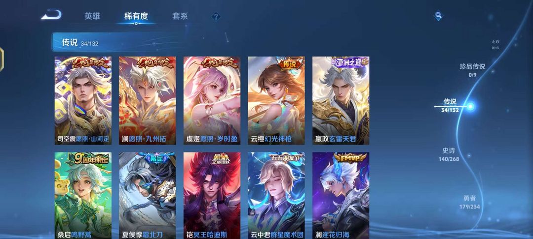 v10、524皮5水4无双、遇见神鼓、齐天大圣、白虎志、韩信荣耀典藏、72传说、愿照·九州拓、时之魔女、瑶无双、青丘、九尾、神器明辉仪