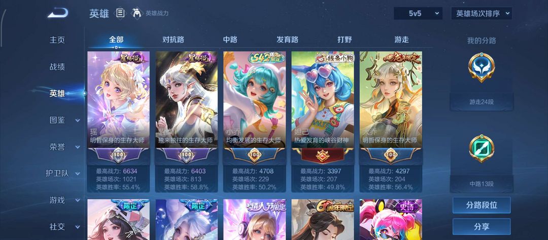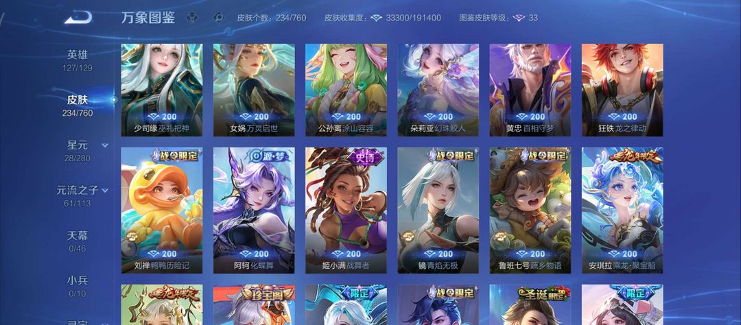 女号 皮肤总数234 瑶全皮肤➕按键 段位最强王者 英雄总数125