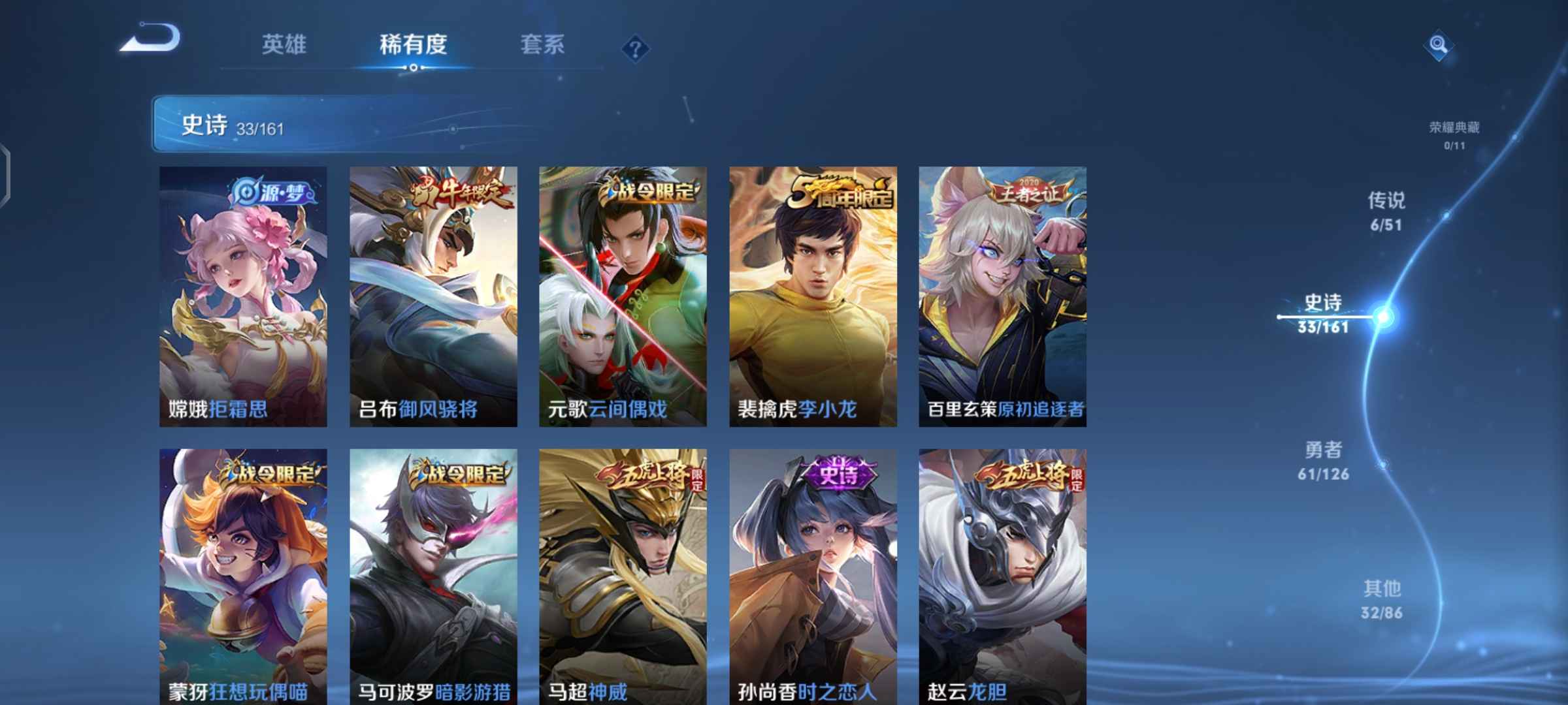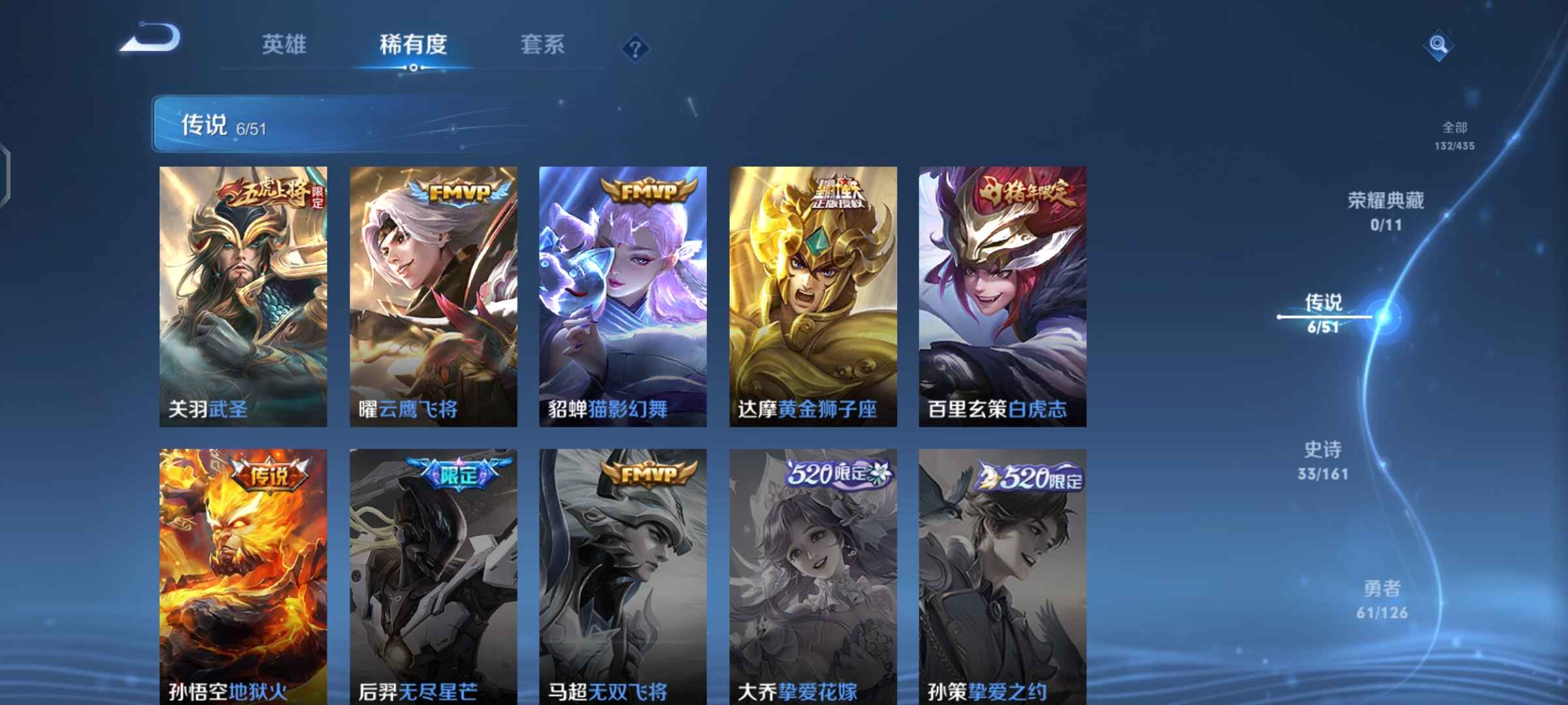 V10、543皮14水、吕布典藏-千魇归渊、愿照·九州拓、愿照·众生和、怪盗基德、伽罗星传说红枫、瑶典藏拾光映像、冥王哈迪斯、、龙年限定、齐天大圣