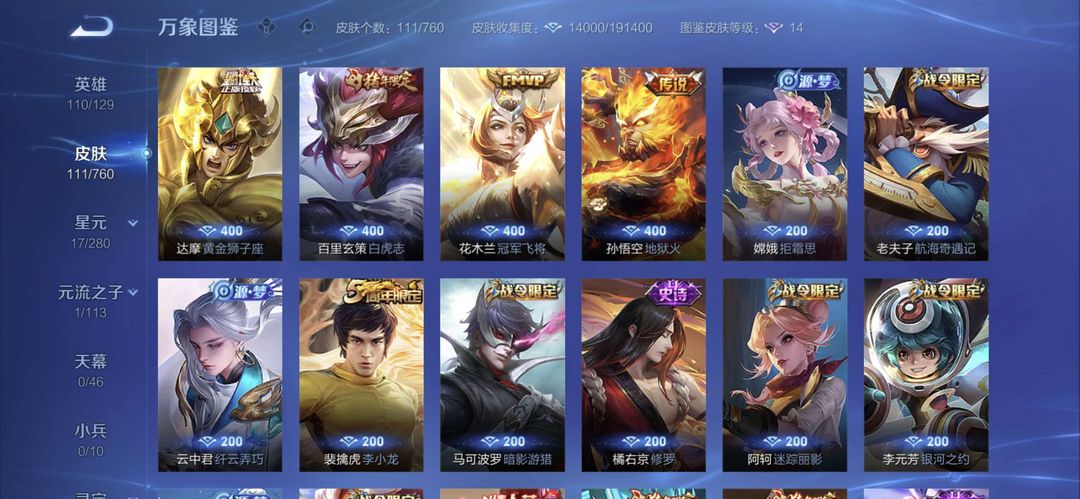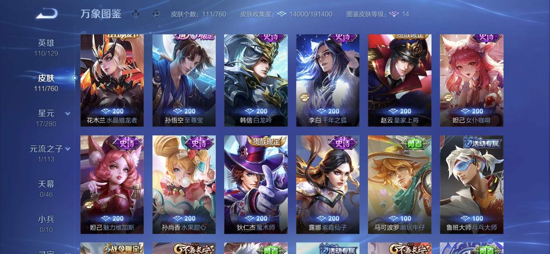 【非云直上】537满皮满典藏12星元◎鲁班新皮◎虞姬星元◎天使星元◎白金战神◎妲己绝版星元