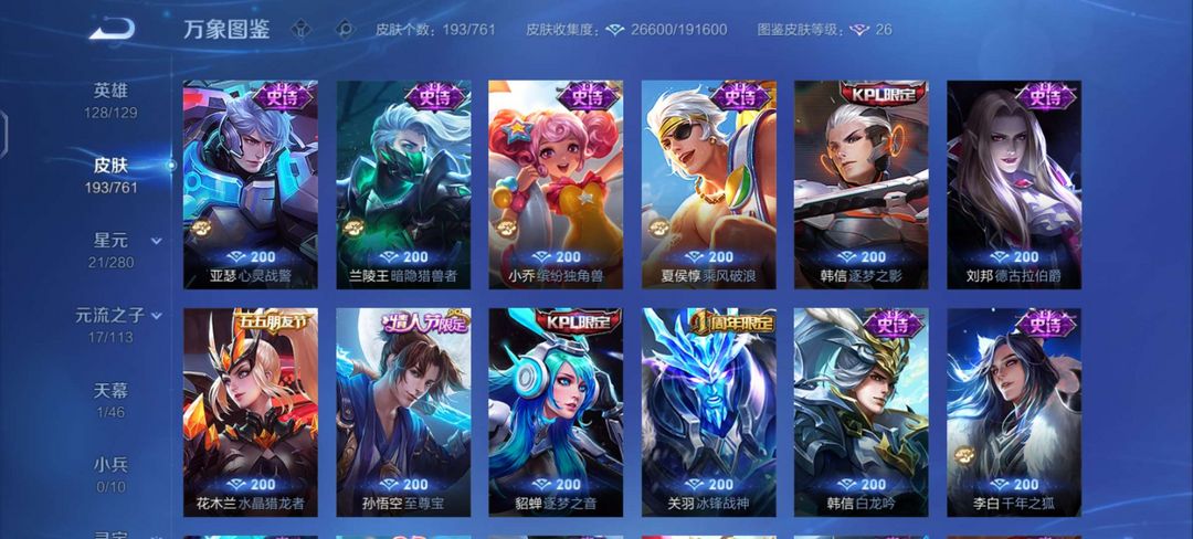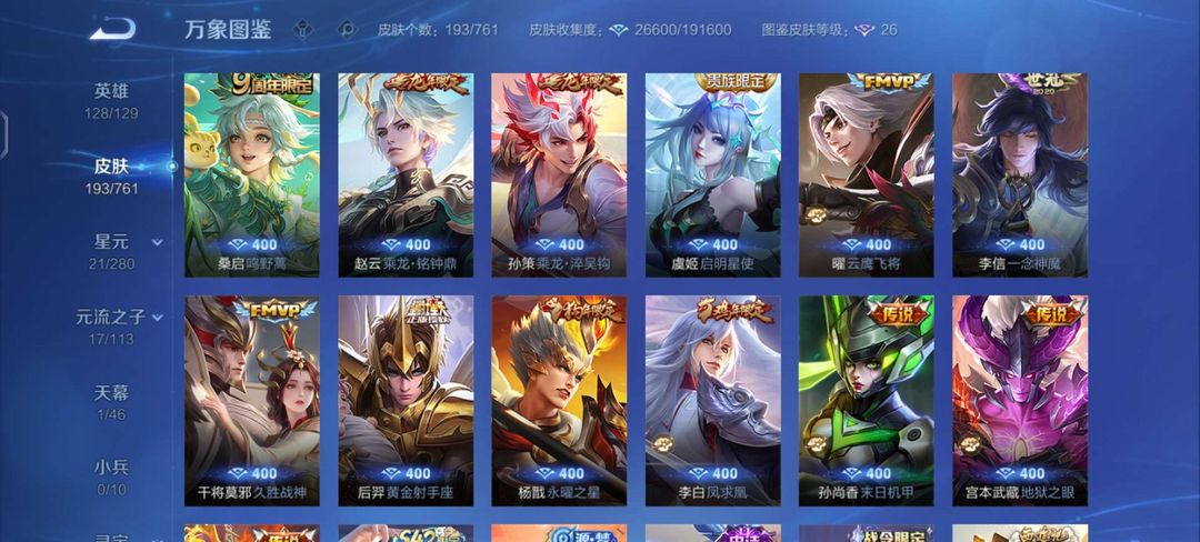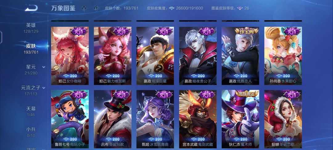 【非云直上】537满皮满典藏12星元◎鲁班新皮◎虞姬星元◎天使星元◎白金战神◎妲己绝版星元