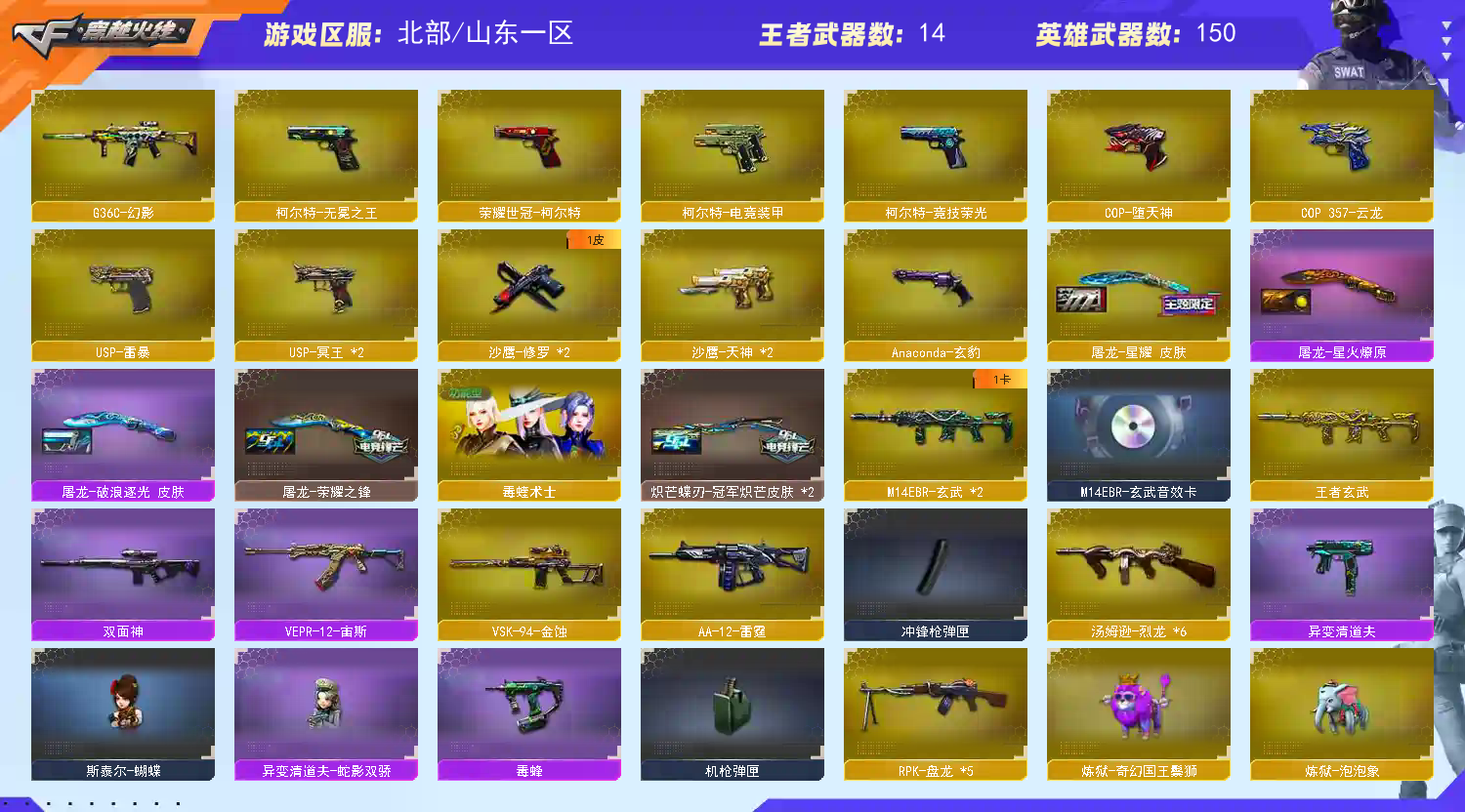 et网游账号 文明租号 禁止开挂 账号已备案 开挂必究 不要恶意撤单 看清楚再下单 【重要角色】传说影煞/传说星骇/神威莲华/_零/_樱/鹰/机械姬/星际战将/毒蝰术士/战地猎狐/_玄豹/王者-瞳-闭月羞花/雪域霜狐/修道士/龙儿-小淘气/代号:翼/奇洋探员/虚空/乔伊教练/兰-春雅灵花/云海玲珑/灵动武士/电竞少女/灵狐者-职业经理/_炽天使/铁骑荣耀/空 【传说武器】传说圣谕/传说辉光/传说夜影/传说幽瞳/传说幽冥 小人枪】火麒麟-灵狐/M4A1-雷神-精英刀锋/牛牛-AK47/Scar Light-马枪/HK417-朱雀-蛇隐宗/AK47-斯沃特/C.A.T/M82A1-水枪-不败狙神/AWM-灵狐-15周年嘉年华/炼狱-奇幻宇宙万象/炼狱-泡泡象/炼狱-秦师/炼狱-护林狮/炼狱-酷酷小狮/KAC锯式机枪-黑桃战神/异变清道夫-蛇影双骄/MK5-炽火炎龙/斯泰尔-蝴蝶/MAC-10-千针棘鲨(3)/MAC-10-龙宝/COP-旗袍(2)/COP-白鲨/迷你深渊冰龙/魔能飞环-曼陀罗;USP-雷暴,柯尔特-无冕之王,荣耀世冠-柯尔特,传说幽冥,炽芒蝶刃,传说影煞,传说星骇,