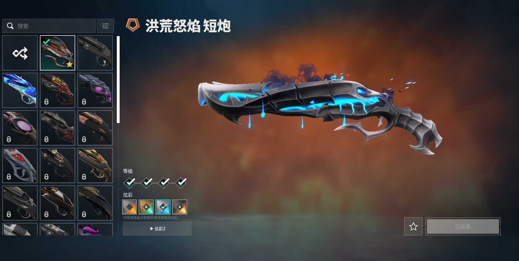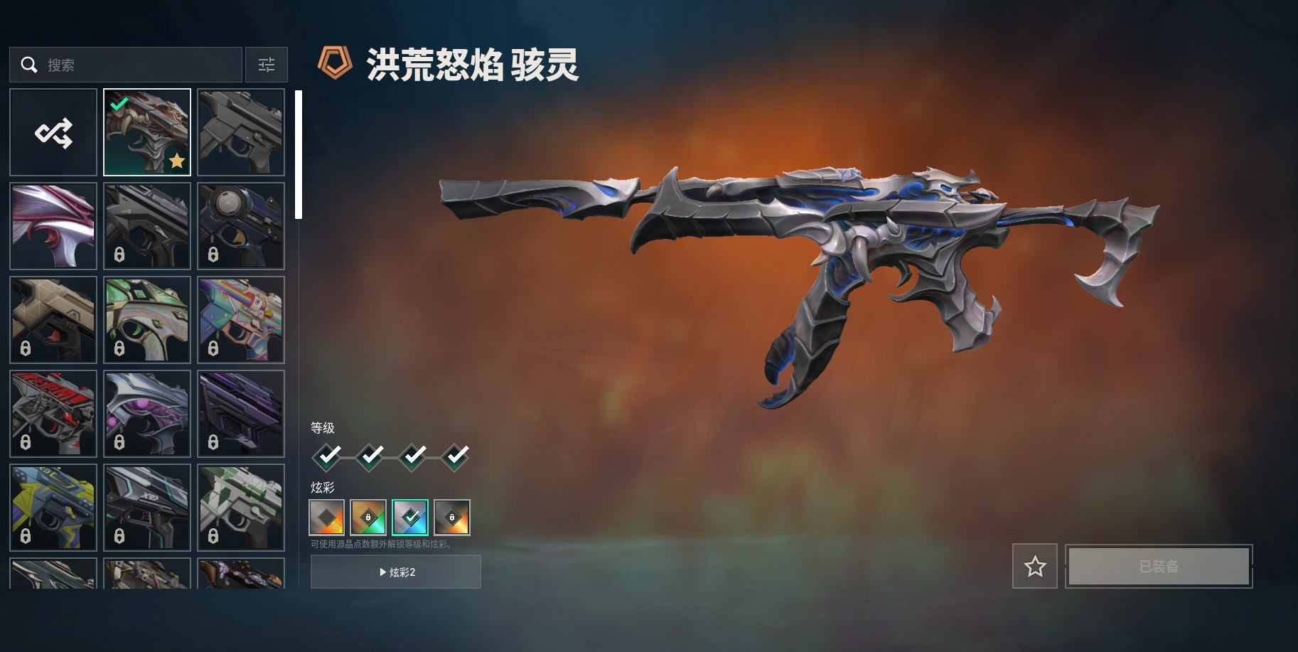 套装:洪荒怒焰套装| 洪荒怒焰套装:洪荒怒焰狂徒V4|洪荒怒焰幻影V4|洪荒怒焰短炮V4|洪荒怒焰骇灵V4|洪荒双斩V2| 其他皮肤:全息波普2.0 狂徒V4|复古浪潮獠犬|珍珠棘贝幻影|珍珠棘贝戍卫|珍珠棘贝骇灵|深海水族蜂刺|复古浪潮雄鹿|奇幻朋克飞将V4|深海水族莽侠|复古浪潮冥驹|深海水族战神|VCTxLOUD标配V3|深海水族短炮|奇幻朋克鬼魅V4|塑水宗正义V4|威龙之刃V2|珍珠棘贝短剑|;威龙之刃,洪荒怒焰 狂徒,洪荒怒焰 幻影,塑水宗 正义,