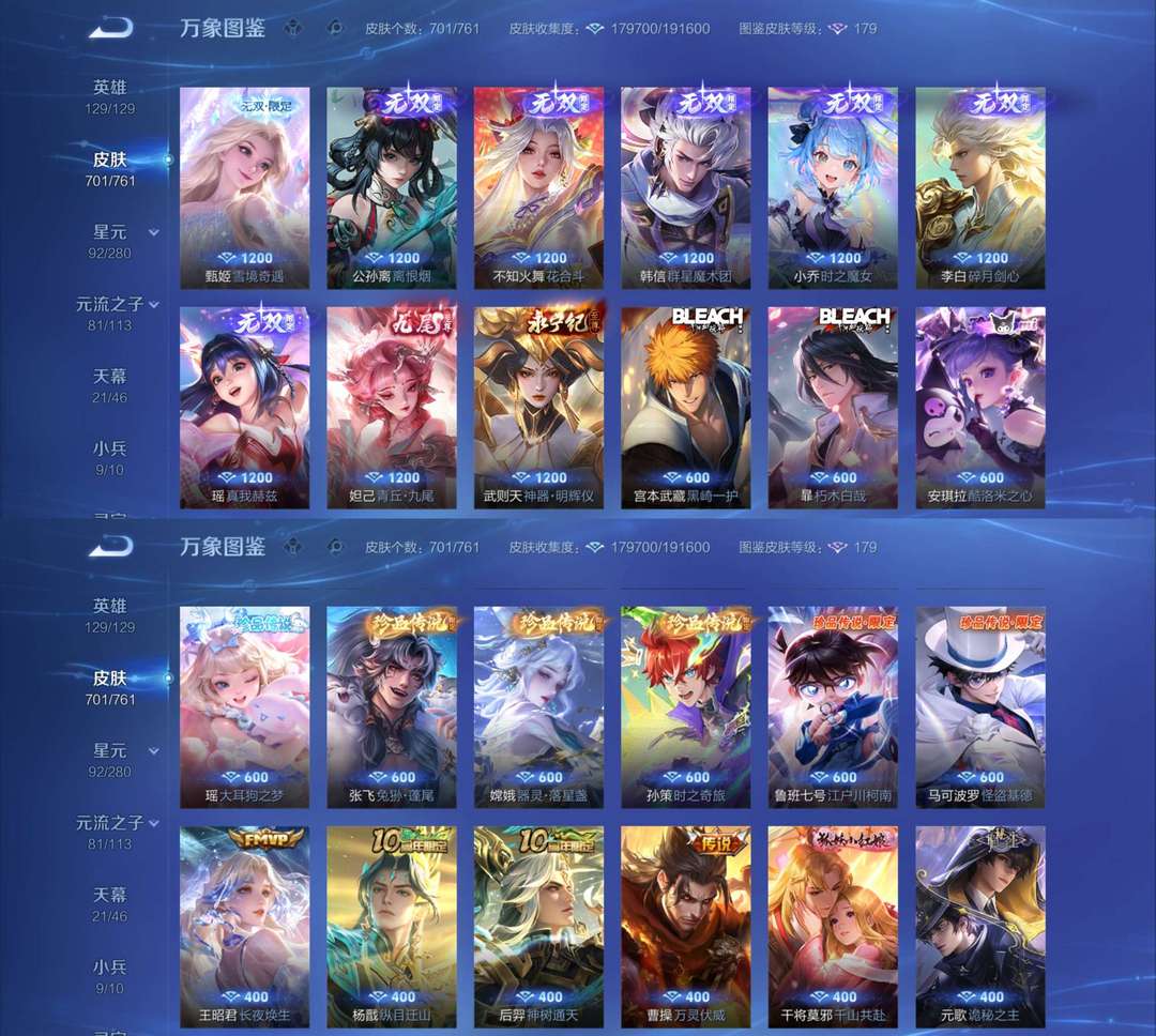 【非云直上】537满皮满典藏12星元◎鲁班新皮◎虞姬星元◎天使星元◎白金战神◎妲己绝版星元