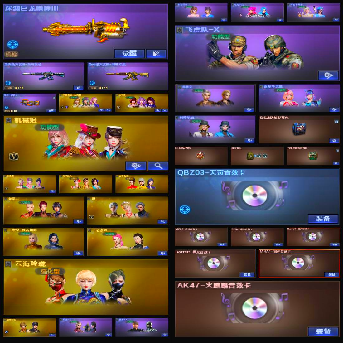 -【云南一区】【幻神三件套】【幻神2皮】【斯泰尔-蝴蝶】【竞技荣光套装X2套】【堕天神套装X6套】【堕天神套装X6套】【传说灵眸】【M200-幻神】【M200-幻神-荣耀世冠白鲨】【幻神-电流骇客 皮肤】【M200-幻神音效卡】【M200-竞技荣光】【Kar98K-星神】【AWM-裁决】【AWM-裁决音效卡】【Scar Light-白虎】【QBZ03-金色蔷薇】【QBZ03-天罚】【王者芳薇-觉醒版】【FAMAS G2-天戎】【G36C-幻影】【M4A1-雷霆王者-觉醒版】【HK417-朱雀】【M4A1-堕天神】【USP-雷暴】【柯尔特-竞技荣光】【COP-堕天神】【COP 357-雷霆王者-觉醒版】【炽芒蝶刃】【加特林-炼狱】【RPK-盘龙】【魂·炼狱-玩具枪】【汤姆逊-烈龙】【斯泰尔-蝴蝶】【电竞教官-云悠悠】【关小雨】【机械姬】【迷迭香】【奇洋探员】【乔伊教练】【蛇隐宗】【瞳】【王者葵-惊若翩鸿】【王者涂鸦】【云海玲珑】【M4A1-雷神】【雷神-杨戬】【雷神-宇航兔皮肤】【雷神-虎将】【雷神-耀金皮肤】【雷神-星空】【M4A1-雷神音效卡】【AK47-火麒麟】【火麒麟-轻羽皮肤】【火麒麟-平天大圣】【火麒麟-CFSTAR】【AK47-火麒麟音效卡】【M4A1-黑骑士】【黑骑士耀金皮肤】【M4A1-黑骑士音效卡】【M4A1-黑龙】【黑龙-暗月】【Barrett-毁灭】【毁灭-冠军之怒】【毁灭耀金皮肤】【毁灭-星空】【毁灭-秦师 皮肤】【毁灭-黑大圣皮肤】【毁灭-魔灵皮肤】【Barrett-毁灭音效卡】;USP-雷暴,炽芒蝶刃,电竞教官-云悠悠,RPK-盘龙,QBZ03-金色蔷薇,G36C-幻影,M200-幻神,