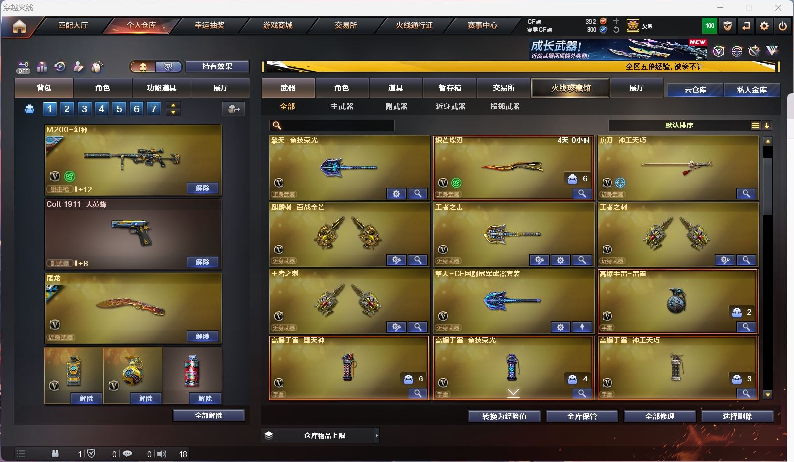 【m200幻神+星火小队+宠儿+荣耀世冠白鲨】【m200竞技荣光套+usp雷暴+云悠悠】【王者星神 】【王者白虎】【qbz金色蔷薇+ag19冠军】【火麒麟】【黑龙】【雷神+卡+n9+宠儿+荣耀之魄】【黑骑士】【毁灭+卡+sv16冠军】【裁决 】【武器:王者之心 王者冰魄 王者之武 王者火魄 盘龙 炼狱 烈龙*2】【9手枪:修罗*4 雷暴 竞技荣光 神工天巧 无冕之王 】【12刀具:屠龙*2 擎天*2 尼泊尔雷霆 堕天神 竞技荣光 神工天巧 王者之击 王者之刺 】【4雷套:雷霆雷 堕天神雷 竞技荣光 神工天巧】【小人枪:雷神精英刀锋 毁灭孙三炮】【音效卡:雷神音效卡 毁灭音效卡】【四防角色:王者葵惊若翩鸿 】;USP-雷暴,柯尔特-无冕之王,电竞教官-云悠悠,RPK-盘龙,QBZ03-金色蔷薇,M200-幻神,