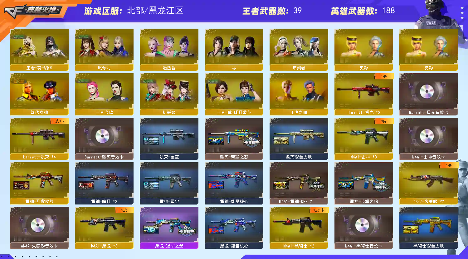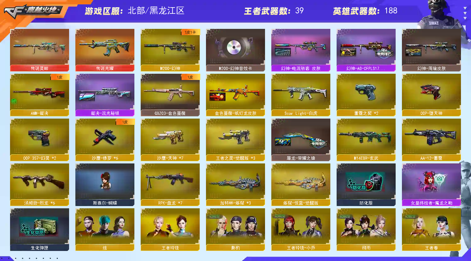 北部号 293V🔥传说灵眸/光耀/王者幻神/幻神三件套+三皮🔥雷霆/堕天神/幻灵套🔥cfs/白马皮四防【黑龙江区登录】【炫金稀有顶1V介意者勿租】【恶意投诉、撤单不想玩了租错号了等非帐号问题1律拉黑】【此号已备案请勿以身试法】【开挂必究账号价值超高】详细武器请看下方 【重要套装】堕天神套装/幻灵套装/网剧冠军套装/雷霆套装/四防角色 【重要角色】_迷迭香/_影豹/司雨/机械姬/_岚兮儿/_炫/_零/审判者/王者春/王者玲珑/王者-瞳-闭月羞花/王者-葵-貂蝉/王者玲珑-小乔/王者涂鸦/狐影/王者之瞳/王者零-传说之路/堕落女神/职业选手/灵狐者-职业经理/铁骑荣耀/空/零-水下丽影/灵狐者-黄金海岸/兰-海滩派对/云海玲珑 【传说武器】传说光耀/传说灵眸 【英雄武器】_M200-幻神/王者幻神-觉醒版/Barrett-毁灭(4)/Barrett-极光(2)/Barrett-朱雀/barrett-金色蔷薇(2)/Barrett-暗月传说/雷霆之怒/AWM-天龙(2)/AWM-裁决/王者之决-觉醒版/M4A1-堕天神/M4A1-青龙/M4A1-雷神(3)/M4A1-死神/M4A1-黑龙(3)/M4A1-龙血(3)/M4A1-千变/M4A1-黑骑士(2)/M4A1-武圣(2)/M4A1-幻灵/M4A1-雷霆(2)/M4A1-玫瑰精灵(2)/王者之魄-觉醒版/_Scar Light-白虎/王者白虎-觉醒版/M14EBR-玄武/AK12-天启/AK47-火麒麟(2)/AK47-无影(2)/AK47-黑鲨/黑武士-CF网剧冠军/AK-47-猩红传说(2)/AK47-机械迷城/AK47-B-身先士卒/AK47-B-常胜将军/AK47-B-战士/AN94-超新星(2)/QBZ03-金色蔷薇/王者之心-觉醒版/王者之翼-觉醒版/9A91-烈火/王者之烈-觉醒版/RPK-盘龙(7)/汤姆逊-烈龙(6)/AA-12-雷霆/加特林-炼狱(3)/炼狱-悦蓝-觉醒版/COP-堕天神/COP 357-幻灵(2)/王者之灵-觉醒版(3)/雷霆之契(2)/沙鹰-天神(7)/天神-CF网剧冠军/沙鹰-修罗(6)/Glock18-武圣(2)/云龙扇/麒麟刺(5)/麒麟刺-堕天神/王者之刺-觉醒版/龙啸(3)/龙啸-堕天神(2)/王者之啸-觉醒版(4)/擎天/擎天-CF网剧冠军/王者之击-觉醒版(4)/屠龙(5)/雷霆之锋/幻灵之锋/王者之锋-觉醒版(2)/高爆手雷-云龙/高爆手雷-幻灵(7)/高爆手雷-雷霆(8)/高爆手雷-堕天神(5)/烟雾弹-云龙(2)/烟雾弹-幻灵(7)/烟雾弹-雷霆(8)/烟雾弹-堕天神(5)/闪光弹-云龙/闪光弹-幻灵(7)/闪光弹-雷霆(8)/闪光弹-堕天神(5)/黑武士-锦绣游龙/王者火魄-觉醒版/王者芳薇-觉醒版/Barrett-云海玲珑/烈龙-云海游龙/龙啸-烈火龙威/擎天-云海游龙/手雷-云海游龙/手雷-热带奇洋 【王者武器】王者之武/王者之怒/王者雷怒/王者风神/王者之锋 【小人枪】C.A.T/牛牛-AK47/雷神-小红(2)/天龙-曼陀罗/巴雷特-零-水下丽影/AWM-灵狐-15周年嘉年华/斯泰尔-蝴蝶/M37-葵/COP-旗袍/COP-白鲨/夺魂/冰火魔兽(4)/迷你深渊冰龙-王绿豆/迷你牛牛/魔能飞环-曼陀罗/灵狐娃娃手雷/高爆手雷-大乔/闪光弹-貂蝉/闪光弹-小乔/深渊终结者手雷/迷你生化手雷 【其他重要武器】炫金千变(2)/炫金火麒麟/炫金无影/炫金天神(3)/炫金修罗/武圣-赤魂/冰龙粉碎者-白马银枪(2)/机甲撕裂者III/激光毁灭者III-白马银枪/AK12-枪王排位/M4A1-XS-耀龙(2)/AK47-十年火线/M4A1-十年火线/AK47-破空冰刃(2)/M14EBR-赤血龙魂(2)/M4A1-破空冰刃/M4A1-电音/9A91-赤血龙魂/AK47-B-十周年/M4A1-肯德基/AK47-万圣节2018/金色小号/AK47-大帝林肯/HK417-赤血龙魂/AK47-祥云苍龙/AK47-丹龙/M4A1-秘银赤龙(6)/AK47-死亡之翼/AK47-盛典-CFS 2022/M4A1-圣诞2021/M4A1-S-能量核心/AK47-苍龙/AK47-SS-枪王排位/QBZ03-吕布/QBZ03-麟龙/AK47-情人节2021/AK47-绚樱/AK47-枪娘/AK-103-红色悦动/M4A1-战龙/M4A1-S-十周年会/红龙AK47/AK47-轮回/G3A3-SS-枪王排位/9A-91-圣诞/AN94-青花瓷/M200-赤血龙魂(2)/Barrett-炎龙/M200-万圣节2018/凤凰之怒/98K-烛龙/M200-万圣节(2)/98K-蓝色骑士/M200-圣诞/AWM-Pink/M200-落樱/Barrett-耀龙/破天狂龙/AWM-盛典-CFS 2022/M200-朋克/雷蛇AWM/Barrett-苍龙/AWM-A-圣诞2021(2)/M200-大黄蜂/暗金M200/蓝色魅影/AWM-恶棍-枪王排位/AWM-Red/巴雷特-情人节2020(2)/AWM-枪娘/AWM-万圣节2019/凤凰之力/98K-炫彩/AWM-摸金校尉/M200-神秘黑洞/巨龙咆哮Ⅲ/KAC-耀龙/KAC-情人节2021/KAC-赤烛(2)/斯泰尔-巧克力(2)/雷蛇冲锋枪/斯泰尔-CFS2017纪念版/EVOIII-萌杀/MK5-枪王排位/EVOⅢ-黑金传说/EVO III-赤血龙魂(2)/Spas-12-幻能朋克/SPAS-12-雷电核心(2)/Spas-12-黑金/阐释者III/COP 357-青龙/沙鹰-枪王排位(3)/凤凰之火/Cop357-赤龙/沙鹰-青龙/沙鹰-能量核心/COP357-绚樱-圣诞(2)/COP-金蝉子-枪王排位(2)/Anaconda-情人节2021/USP-黑大圣(2)/COP357-朋克/新USP-枪王排位奖励(3)/Anaconda-万圣节2019/Anaconda-炽焰核心/愤怒公牛左轮-枪王排位/军用铁锹-飞龙在天/鹰爪-枪王排位(2)/丛林匕首-枪王排位/虹光鹰爪-枪王排位/虹光丛林匕首-枪王排位(2)/尼泊尔军刀-9周年/蝴蝶刀-枪王排位/虹光女皇利刃-枪王排位/斩神刀-青帝/胜利奖杯手雷-枪王排位(2)/胜利奖杯闪光弹-枪王排位(2)/胜利奖杯烟雾弹-枪王排位(2)/闪光弹-枪王排位(4) 【重要武器皮肤】幻神-电流骇客 皮肤/幻神-周瑜皮肤/幻神-AG-CFPLS17冠军/毁灭-星空/毁灭-荣耀之怒/毁灭耀金皮肤/天龙-CFSTAR/天龙-能量核心/裁决-流光秘银/火麒麟-CFSTAR/火麒麟-AG/无影-能量核心/无影耀金皮肤/AK47-B-常胜将军-刘备/AK47-B-常胜将军-孙权/AK47-B-常胜将军-曹操/AK-47-雷神/M4A1-千变-孔明皮肤/M4A1-雷神-CFS 2019/雷神-荣耀之魄/雷神-暗月/雷神-烈虎皮肤/雷神-能量核心/雷神-星空/黑骑士耀金皮肤/黑龙-冠军之武/黑龙-暗月/黑龙-能量核心/金色蔷薇-纸灯龙皮肤/战神-粉色甜心皮肤/烈火-动感闪耀 皮肤/修罗-星空/修罗耀金皮肤/修罗-CFSTAR/屠龙-荣耀之锋 【重要光效】王者之啸金色光效/王者之心金色光效