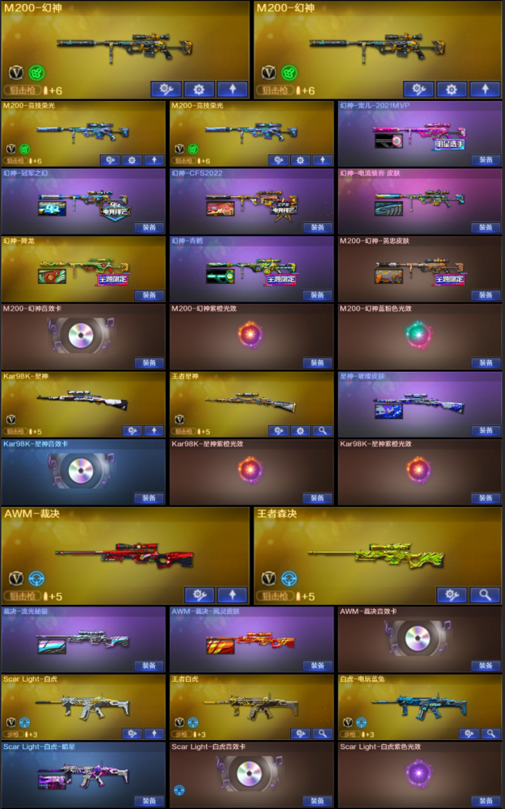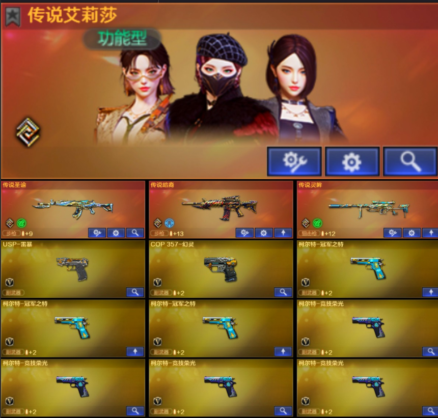 传说艾莉莎/传说灵眸/满配9副手/幻神三件套7皮/裁决三件套双皮/星神三件套/G36幻影6烈带蝴蝶