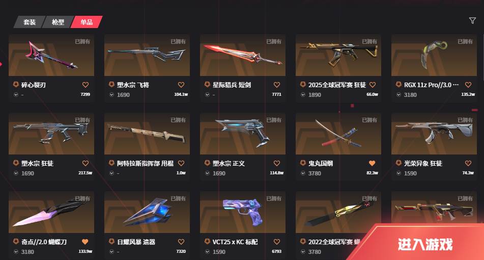 可排位 22冠军套丨超时空25冠军塑水宗光荣盖亚狂徒丨塑水宗飞将正义丨显卡爪刀奇点蝴蝶刀鬼丸国纲