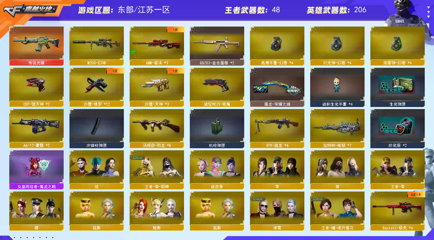 东部天花板 315V可排🔥传说光耀+幻神+朱雀🔥全幻兽夜魔套+小人枪+四防🔥EVE冠军CFS荣耀三件套AG 【重要套装】幻兽套装/网剧冠军套装/夜魔套装/雷霆套/堕天神套/四防角色 【重要角色】_葵/_迷迭香/_零/_樱/_炫/魅影/_凌霄/王者零-传说之路/王者-葵-貂蝉/王者-瞳-闭月羞花/王者-零/狐影/铁骑荣耀/空/零-水下丽影/灵狐者-黄金海岸 【传说武器】传说光耀 【英雄武器】_M200-幻神/王者幻神-觉醒版/Barrett-毁灭(3)/Barrett-极光(6)/Barrett-朱雀/Barrett-暗月传说(2)/AWM-天龙(6)/AWM-裁决(3)/M4A1-雷神(5)/M4A1-死神/M4A1-黑龙(6)/M4A1-千变/M4A1-黑骑士(9)/M4A1-武圣(3)/M4A1-夜魔/M4A1-猎神/M4A1-玫瑰精灵(5)/王者之魄-觉醒版/王者冰魄-觉醒版/王者之幻-觉醒版/HK417-朱雀/QBZ95-幻兽/AK12-天启(4)/AK47-火麒麟(5)/AK47-无影(3)/无影-神兵利器/AK47-黑鲨(3)/AK47-黑武士(4)/黑武士-CF网剧冠军/AK-47-猩红传说(3)/AK47-机械迷城(2)/AK47-B-战士/AK47-B-战神/AN94-超新星(2)/QBZ03-金色蔷薇(2)/王者之心-觉醒版/9A91-烈火/RPK-盘龙(6)/汤姆逊-烈龙(8)/AA-12-雷霆(2)/加特林-炼狱(7)/COP-堕天神(2)/沙鹰-天神(3)/天神-CF网剧冠军/沙鹰-修罗(12)/沙鹰-幻兽(4)/Glock18-武圣/_破空枪刃_/破空枪刃-夜魔/麒麟刺(4)/麒麟刺-堕天神/龙啸(4)/王者之啸-觉醒版/擎天(2)/擎天-CF网剧冠军/屠龙(6)/雷霆之锋(2)/马来剑-夜魔/女皇利刃-幻兽/斩神刀-雷暴/高爆手雷-幻兽(4)/高爆手雷-雷暴/高爆手雷-雷霆(2)/高爆手雷-夜魔(7)/高爆手雷-堕天神/烟雾弹-幻兽(4)/烟雾弹-雷暴/烟雾弹-雷霆(2)/烟雾弹-夜魔(7)/烟雾弹-堕天神/闪光弹-幻兽(4)/闪光弹-雷暴/闪光弹-雷霆(2)/闪光弹-夜魔(7)/闪光弹-堕天神 【王者武器】王者之魄/玫瑰精灵-悦动(7)/王者之翼(2)/王者之影(2)/王者之武(3)/天启-悦智(3)/王者之势/王者之戮(2)/王者之心/超新星-悦享/王者之圣/王者之城/王者炎心/王者之怒(2)/王者之光(3)/王者之力/盘龙-悦心(3)/炼狱-悦蓝(3)/烈龙-悦心/王者之灵/王者之魂/王者之击 【小人枪】M4A1-雷神-精英刀锋/火麒麟-绝迹/M4A1-刀锋/Cat-刀锋/M37-葵/COP-旗袍/降世魔童(2)/迷你深渊冰龙(3)/冰火魔兽(4)/深渊终结者手雷/闪光弹-小乔 【其他重要武器】炫金骑士/炫金武士(2)/炫金雷神(2)/炫金黑龙/炫金千变/炫金毁灭(3)/炫金天龙/炫金修罗/武圣-赤魂/黑武士-能量核心(4)/M4A1-英雄-能量核心/黑骑士-摸金校尉(2)/火麒麟-暗月/M4A1-仙界-黑骑士/M4A1-十二生肖·龙-雷神/火麒麟-能量核心/激光毁灭者III/海浪AK47-Q浏览器(2)/凤凰之魂/M4A1-十年火线/AK47-轮回/M4A1-电音/AK47-烛龙/QBZ03-烛龙/联想锋行黄金AK/M14EBR-赤血龙魂/HK417-赤血龙魂/9A-91翡翠(2)/AK47-万圣节2018/凤凰之魄(2)/AK47-B-十周年(2)/AK47-青龙/M4A1-青龙./AK47-樱花/M4A1-樱落/M4A1-樱花/9A91-2017万圣节/AK47-SS-9周年/AK-12-CFS2017纪念版(3)/M4A1-XS-赤龙/9A91-蓝色骑士(2)/M4A1-XS-耀龙/AK47-肯德基/M4A1-XS-翔龙/56式步枪-梨花/M4A1-樱/M14EBR-天羽/M4A1-秘银赤龙(7)/AK12-幽灵/M4A1-肯德基/M4A1-战龙/G3A3-SS-枪王排位(3)/M4A1-情人节2019/AK47-十二生肖-蛇/HK417-红龙/AK47-娜塔莎/雷神-赛博朋克/火麒麟-桃园结义/AK47-雷蛇/AK12-枪王排位(2)/AK47-SS-枪王排位(2)/红龙AK47/金色小号/AK47-苍龙/M4CQBR-AP-孔明/M14EBR-CFS 2020/AK47-枪娘/M4A1-狂欢-CFS/AK47-圣诞节[2019]/AK47-狂欢-CFS/AK47-死亡之翼/M4A1-PINK/AK47-十年火线/AK47-破空冰刃/M4A1-破空冰刃(2)/M4A1-SS-枪王排位(2)/黄金AK-47/M4A1-紫狱/M14EBR-情人节2020/M4A1-Guitar 炫彩/9A91-赤血龙魂(4)/AK47枪王排位II/神罚/蓝色魅影/M200-涂鸦/M200-万圣节(2)/AWM-十周年/暗金M200(2)/AWM-7周年/98K-蓝色骑士/AWM-Pink/AWM-圣诞2013/AWM-深海猎手/凤凰之力/AWM-圣诞/M200-圣诞(2)/AWM-A-彩虹(2)/AWM-A/FN弩炮-CFS2017纪念版/凤凰之怒/破天九龙/AWM-恶棍-枪王排位/AWM-CFS 2020/AWM-万圣节刀锋(2)/AWM-S/M200-赤血龙魂/AWM-枪娘/AWM-A枪王排位II/98K-炫彩/M200-大黄蜂/M200-万圣节2018/雷蛇AWM/AWM-2018圣诞/AWM-涂鸦/AWM-蓝水晶/98K-烛龙/M200-牡丹/M200-情人节2019/M200 CheyTac-大圣/AWM-红色悦动/巨龙咆哮Ⅲ/MG4-蓝色骑士/MG3-翔龙/阿梅利轻机枪-暗夜风暴/KAC-赤烛/雷蛇冲锋枪/斯泰尔-巧克力/斯泰尔-CFS2017纪念版/MK5-圣诞/EVOⅢ-黑金传说/EVO III-赤血龙魂/征服者-寒冰之狱 [Lv Max]/Spas-12-黑金/SPAS-12-雷电核心/阐释者III/沙鹰-青龙(2)/Cop357-赤龙(2)/柯尔特双枪-2017万圣节/凤凰之火/愤怒公牛左轮-枪王排位(2)/凤凰之灵/Mauser M1896-CFS 2020/修罗-摸金校尉(2)/Anaconda-黑金神龙(3)/COP-十二生肖-蛇/沙漠之鹰-炎龙/COP 357-子鼠/幻影沙鹰-枪王排位/新USP-枪王排位奖励(6)/COP 357-平天大圣/沙鹰-枪王排位(4)/幻影Anaconda-枪王排位/新USP-怒火大圣/沙鹰-万圣节2018/沙鹰-雷蛇/COP 357-青龙/COP 357--绚樱/丛林匕首-枪王排位/军用铁锹-赤龙/啸天(2)/收割者-枪王排位/鹰爪-枪王排位/尼泊尔-CFS 2020/幻影扳手-枪王排位(2)/丛林匕首-卧龙(3)/唐刀-九五至尊/幻影双斧-枪王排位/蝴蝶刀-枪王排位/军用铁锹-飞龙在天(2)/胜利奖杯手雷-枪王排位/手雷-能量核心(3)/胜利奖杯闪光弹-枪王排位(2)/闪光弹-枪王排位(5)/红色诅咒娃娃手雷 【重要武器皮肤】极光-能量核心/雷神-冠军之魄/黑骑士-冠军之势/毁灭-CFS2020/毁灭-荣耀之怒/毁灭耀金皮肤/毁灭-暗月/AWM-天龙-传奇70KG/天龙-CFSTAR/天龙-秘银/天龙-能量核心/雷神-荣耀之魄/雷神-虎将/雷神-耀金皮肤/雷神-暗月/雷神-能量核心/雷神-星空/黑骑士耀金皮肤/黑骑士-暗月/黑龙-暗月/黑龙-能量核心/M4A1-黑龙-361/AK47-火麒麟-传奇EVEN/火麒麟-CFSTAR/火麒麟-AG/无影-暗月/无影-霓裳皮肤/无影-能