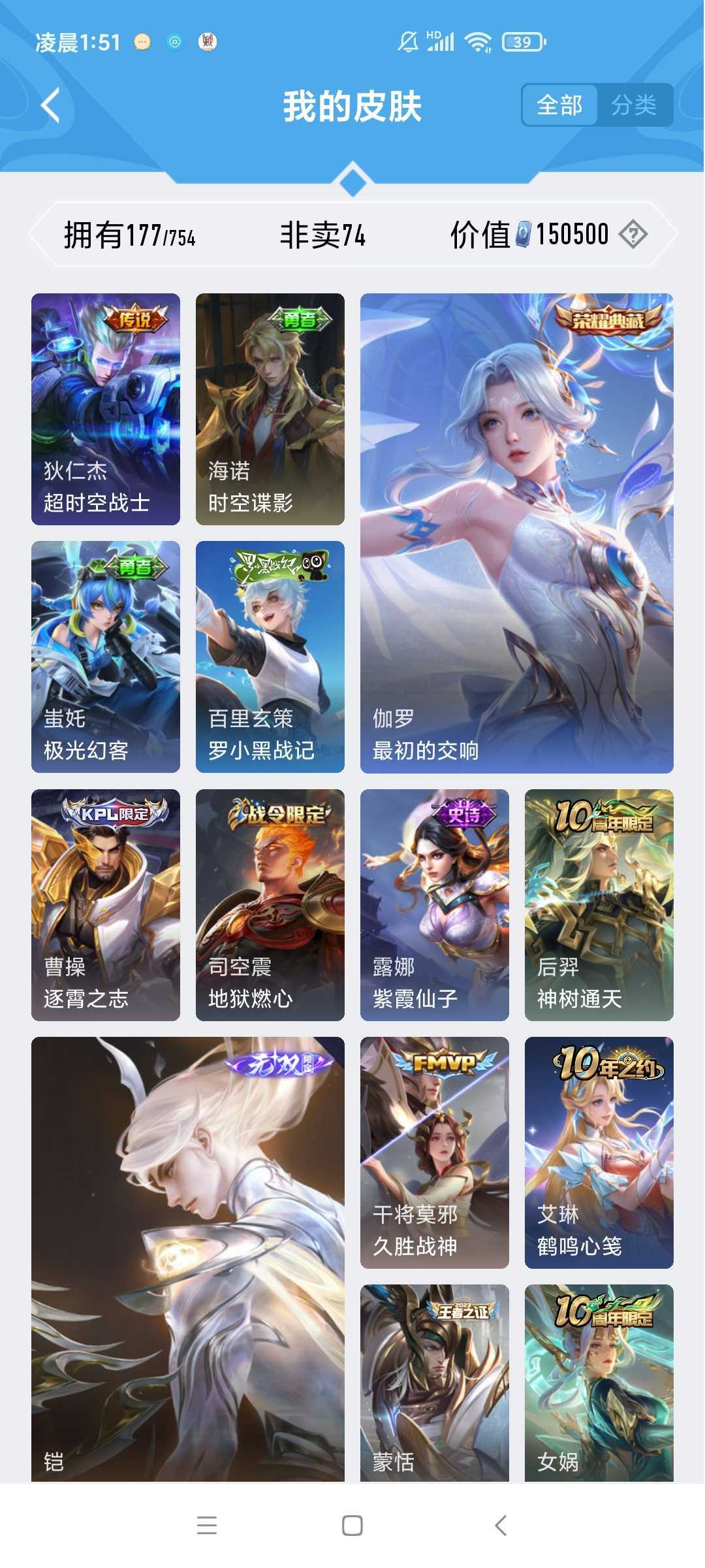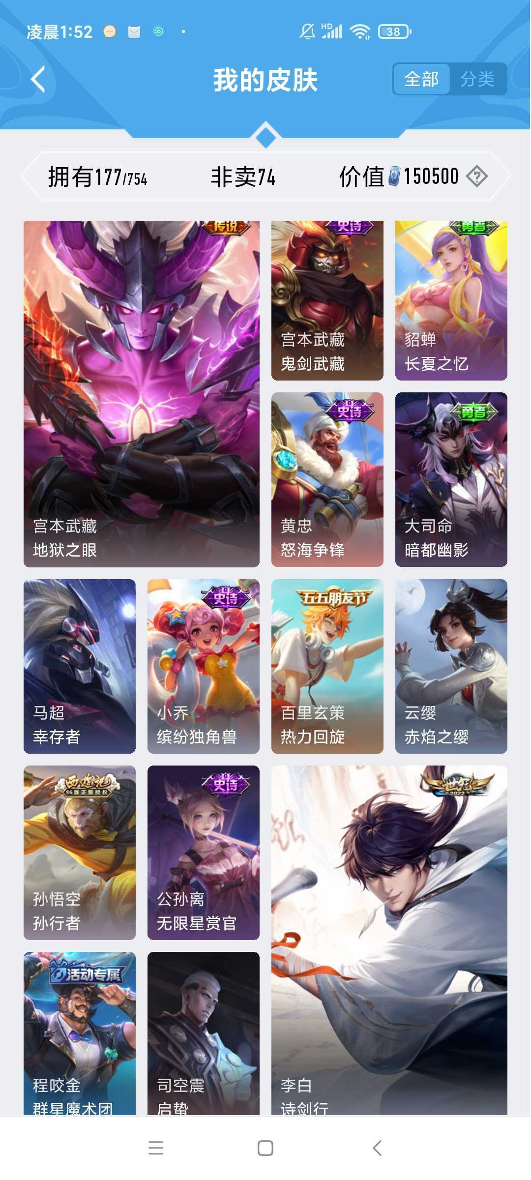 女生号 贵10 多皮肤多传说 别拿那些空号v10来比 要看性价比 貂蝉武则天夏侯惇孙悟空李白鲁班小乔荣耀水晶 妲己九尾无双皮肤 80个传说 473皮肤