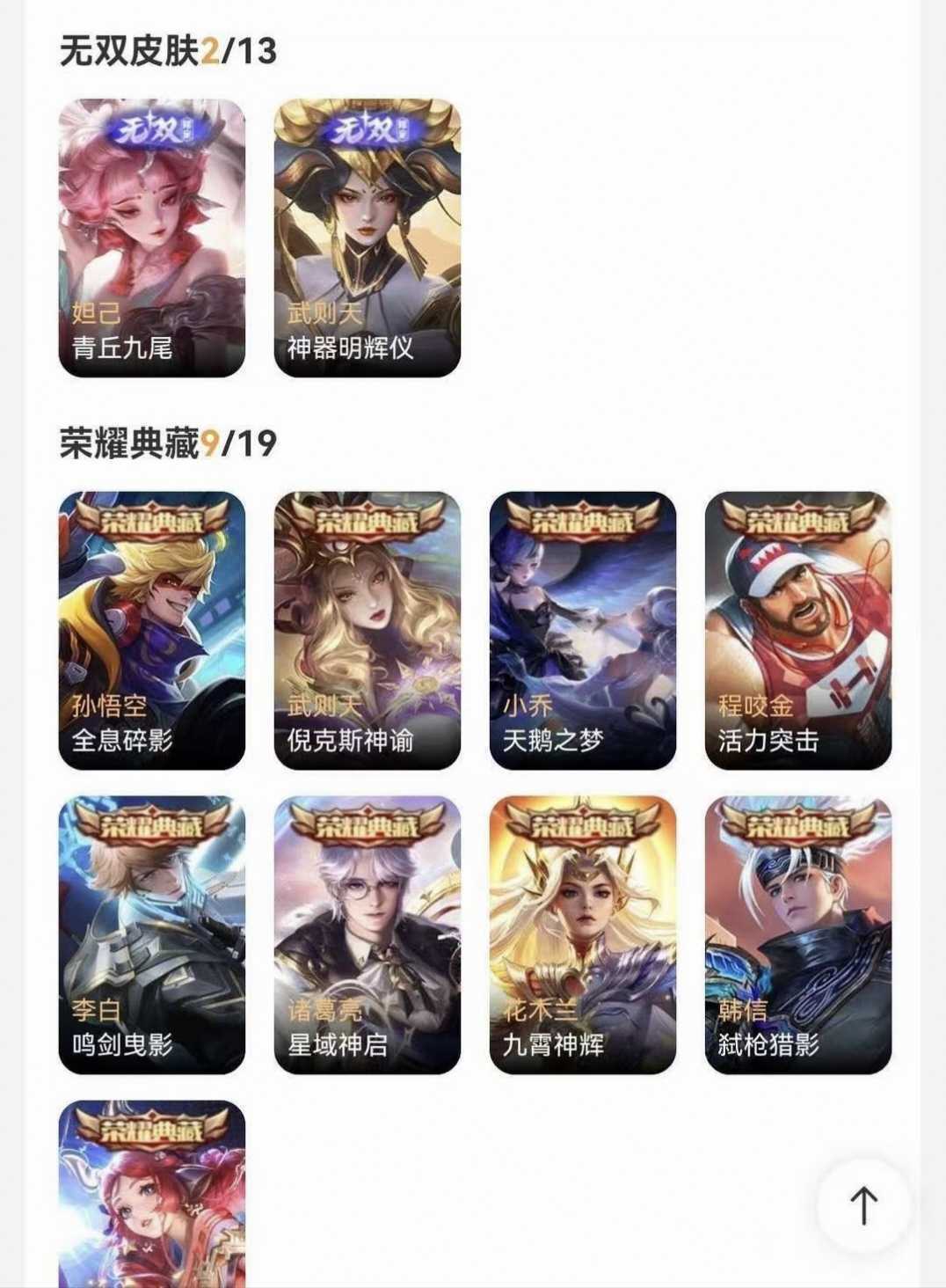 v10、524皮5水4无双、遇见神鼓、齐天大圣、白虎志、韩信荣耀典藏、72传说、愿照·九州拓、时之魔女、瑶无双、青丘、九尾、神器明辉仪