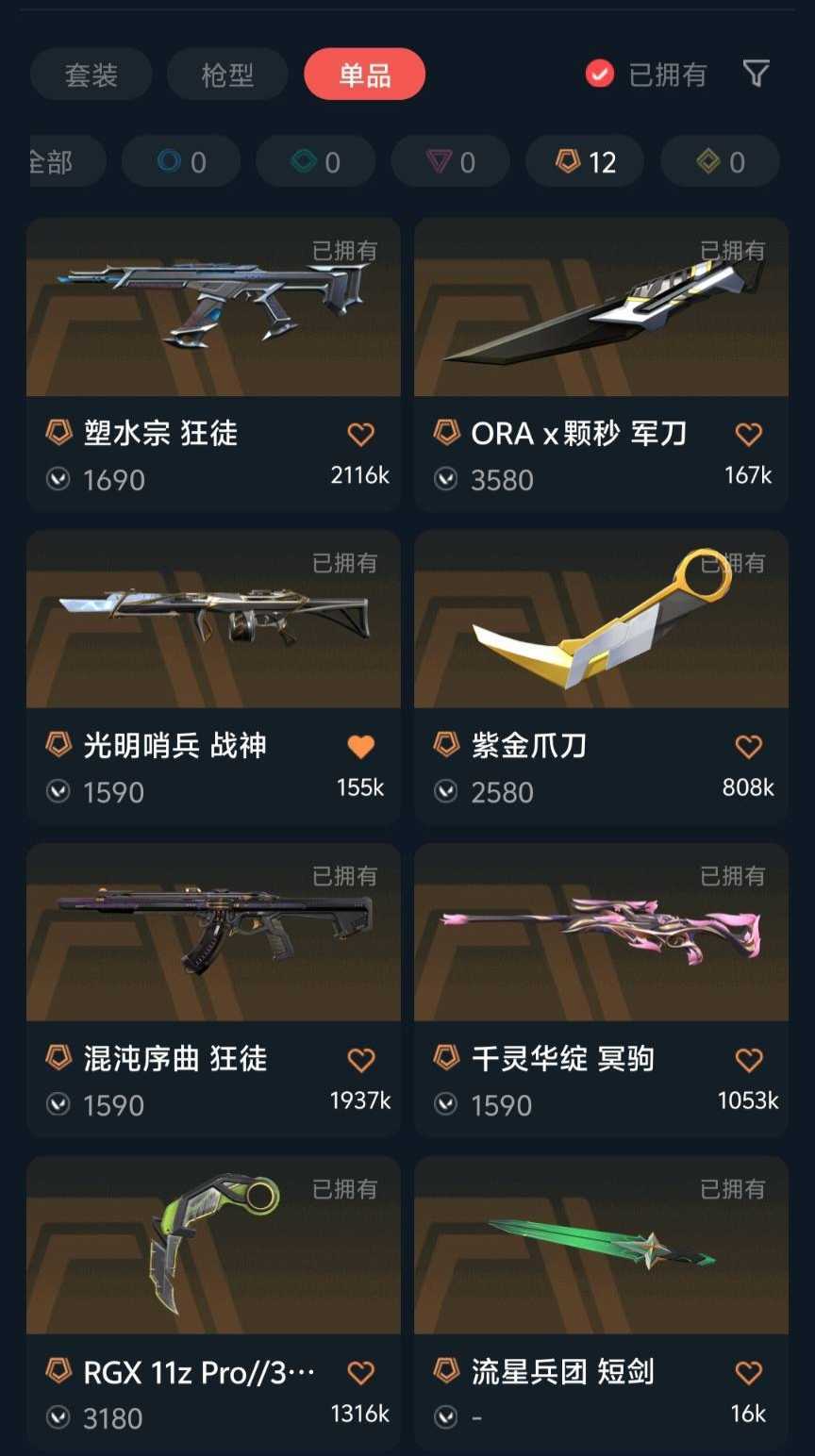 首页 > 租号大厅 > 无畏契约-wegame > wegame/wegame > 可排✨颗秒军刀✨塑水宗狂徒✨混沌狂徒✨奇点正义✨RGX爪刀✨盖亚狂徒✨千灵冥驹
