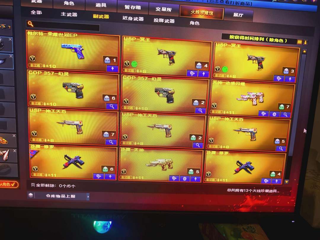 幻神三件套,星神三件套,裁决三件套,雷神三件套,火麒麟三件套,毁灭三件套,白虎三件套,满配手枪,