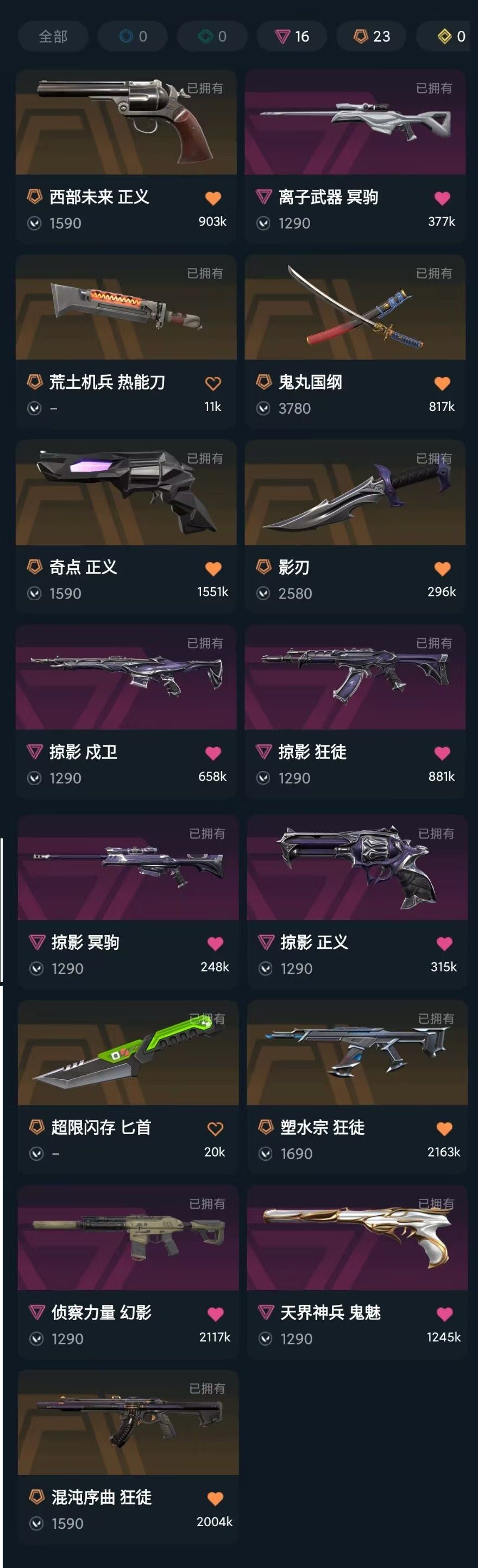 可排❤️25冠军套❤️魔术火花影刃影钩鬼丸国纲❤️混沌显卡黑波紫金掠夺狂徒❤️奇点正义❤️